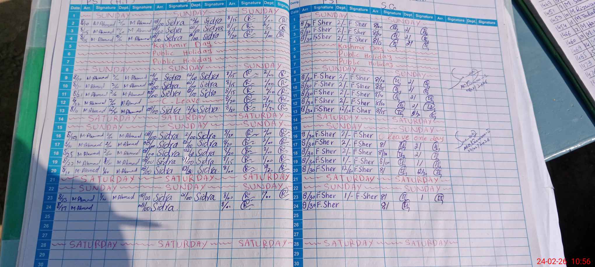 | Leave | Duty | Absent | Maternity | Medical | Ex- Pak |