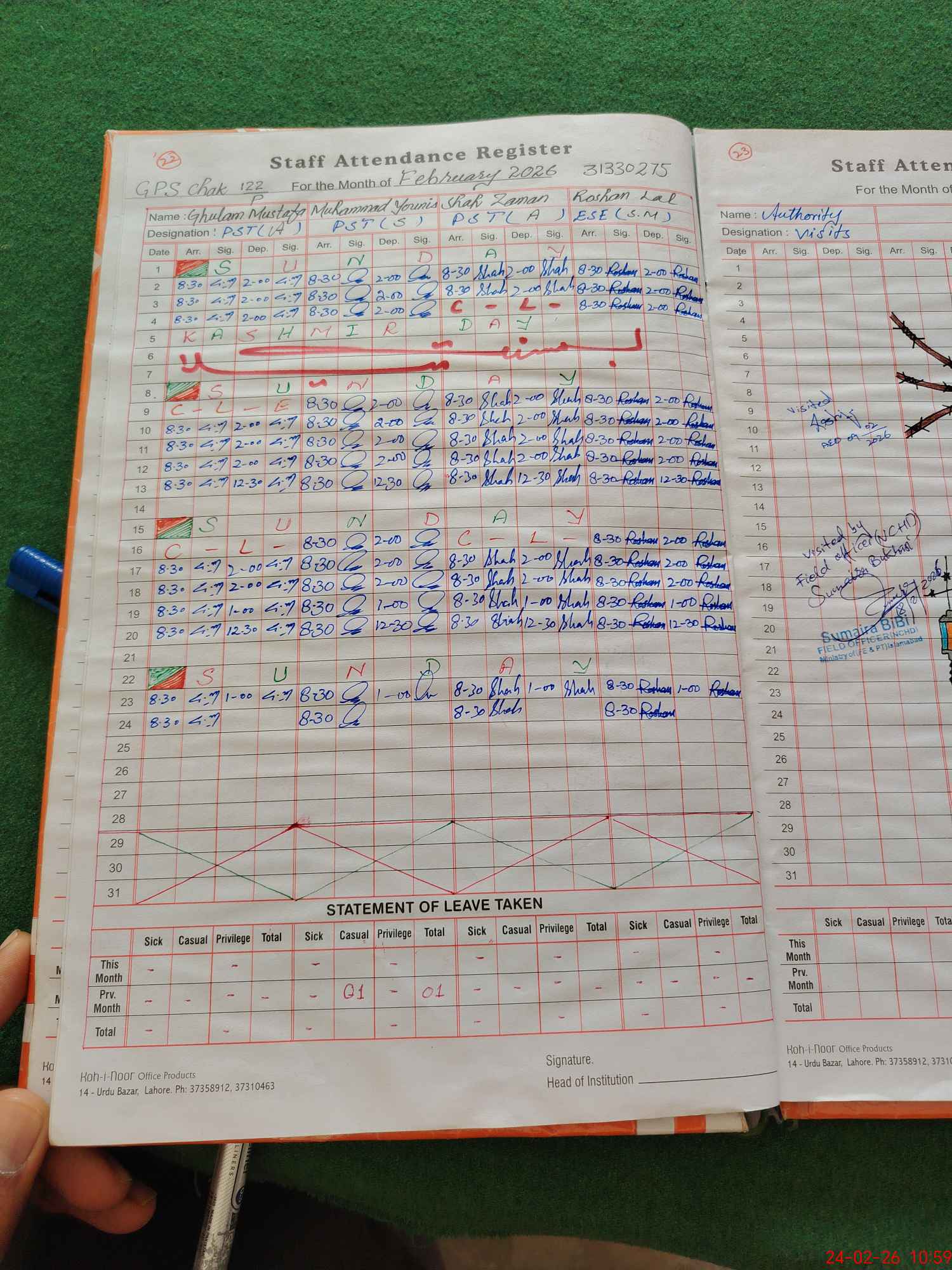 | Name: Gh**** Mu**** Designation: (School Headmaster's/Headmistress's) PST Phone/Cell Number: 03**** |