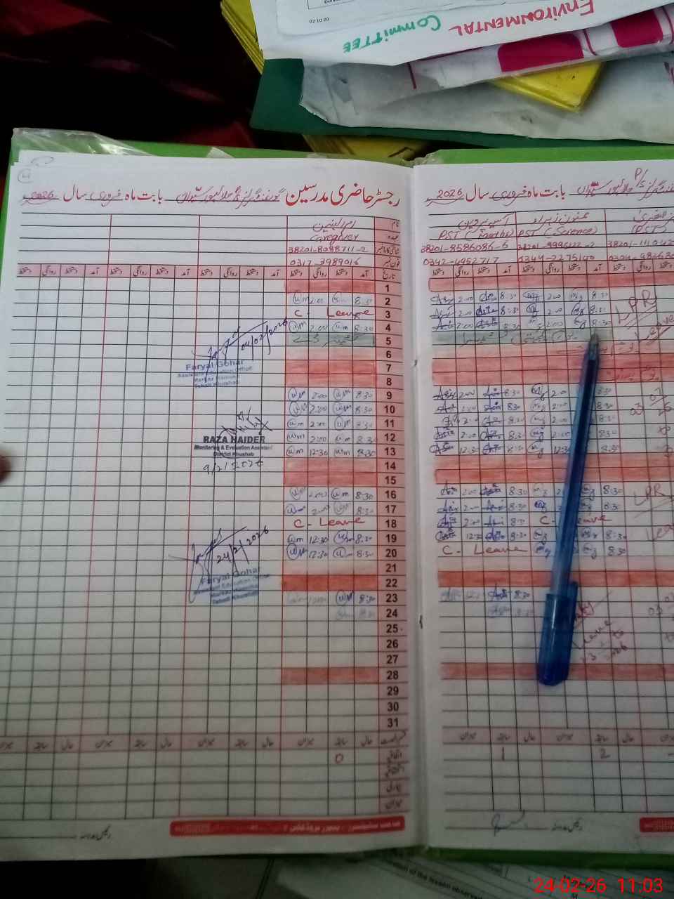 | CNIC | Full Name | Designation | R/C | Absence During Last Calender Month |
