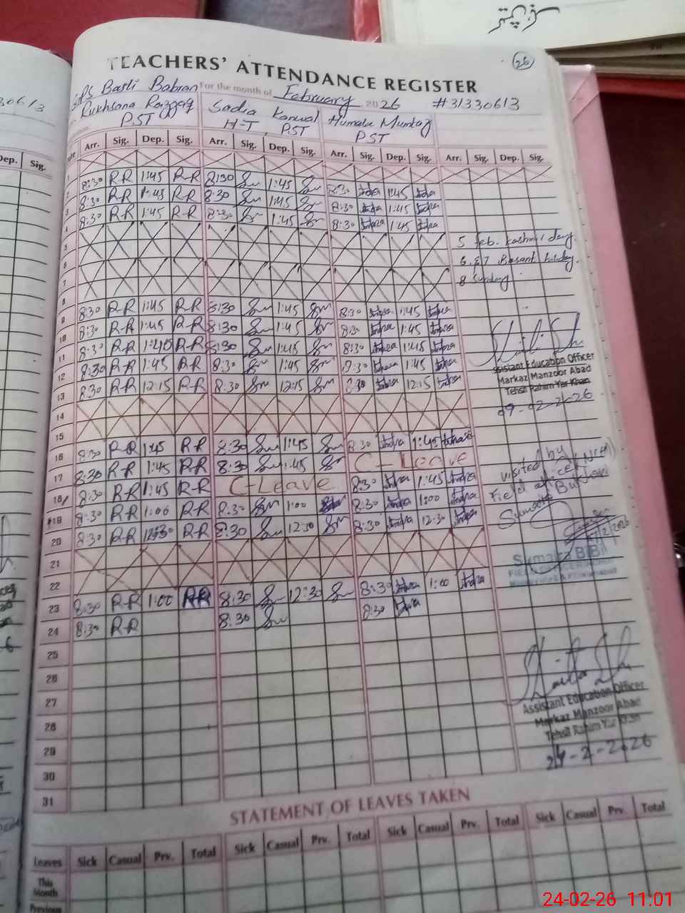 | Leave | Duty | Absent | Maternity | Medical | Ex- Pak |