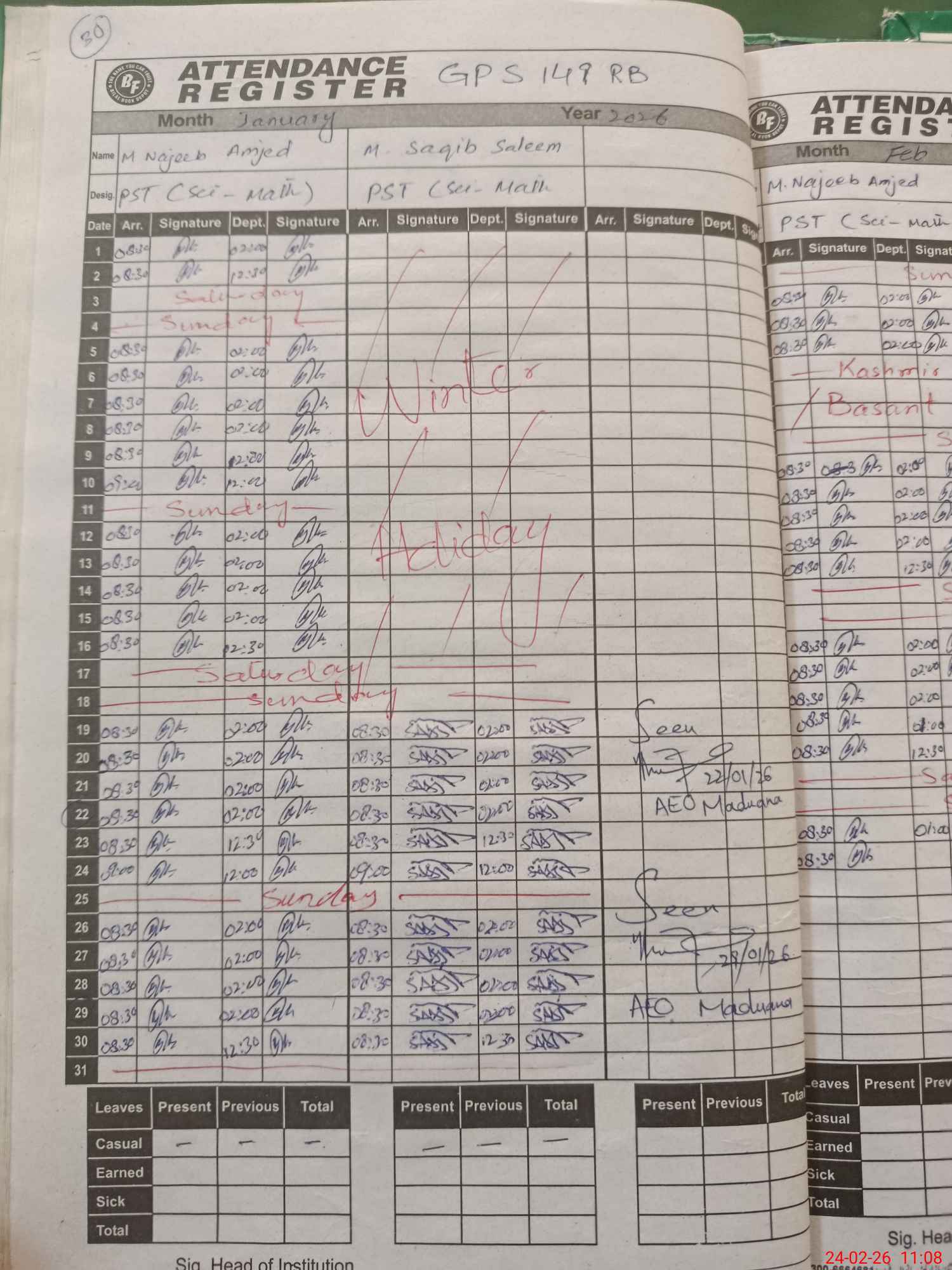 | Leave | Duty | Absent | Maternity | Medical | Ex- Pak |
