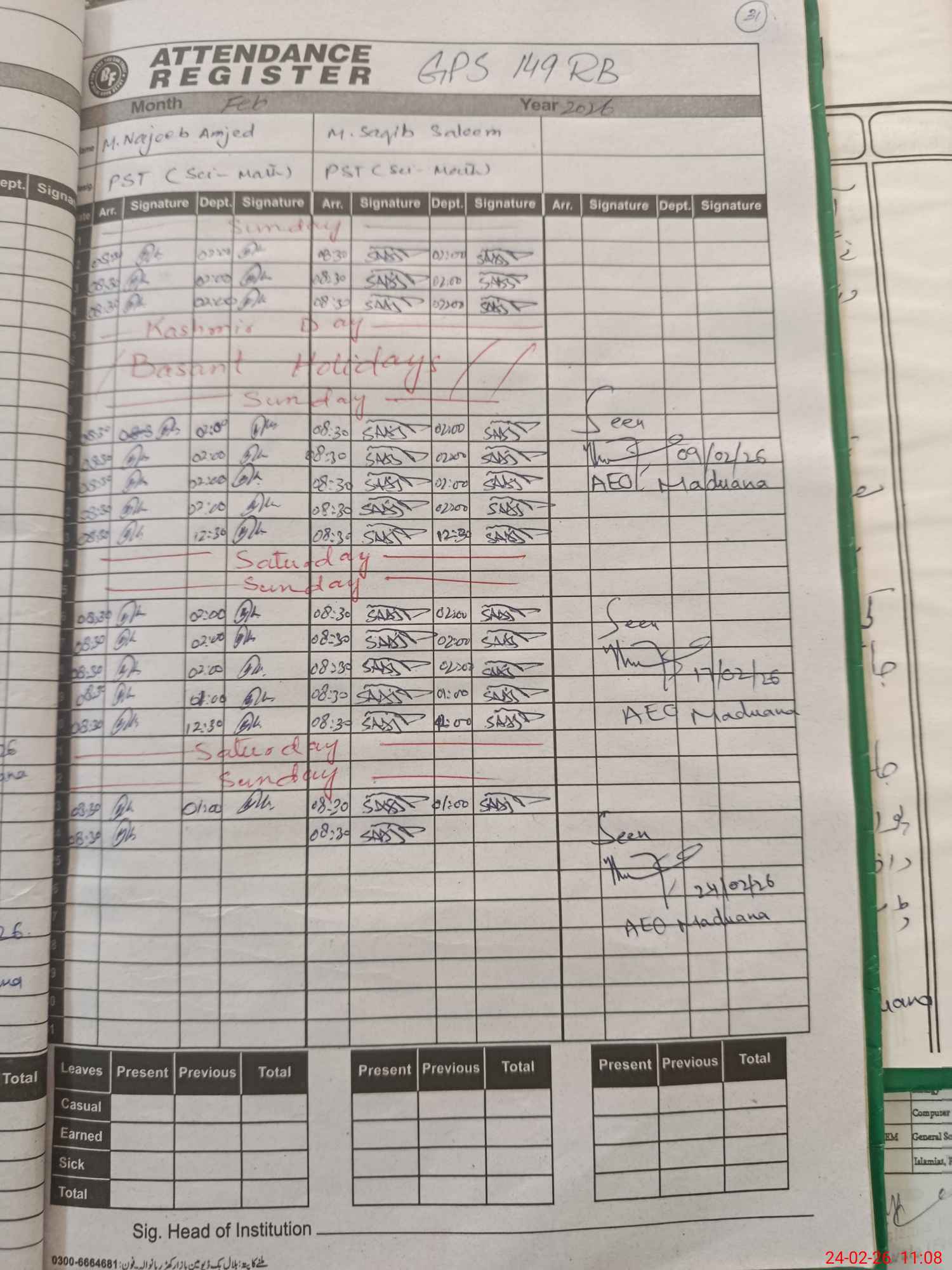 | Name: MU**** NA**** AM**** Designation: (School Headmaster's/Headmistress's) PST ( SCI ) Phone/Cell Number: 03**** |