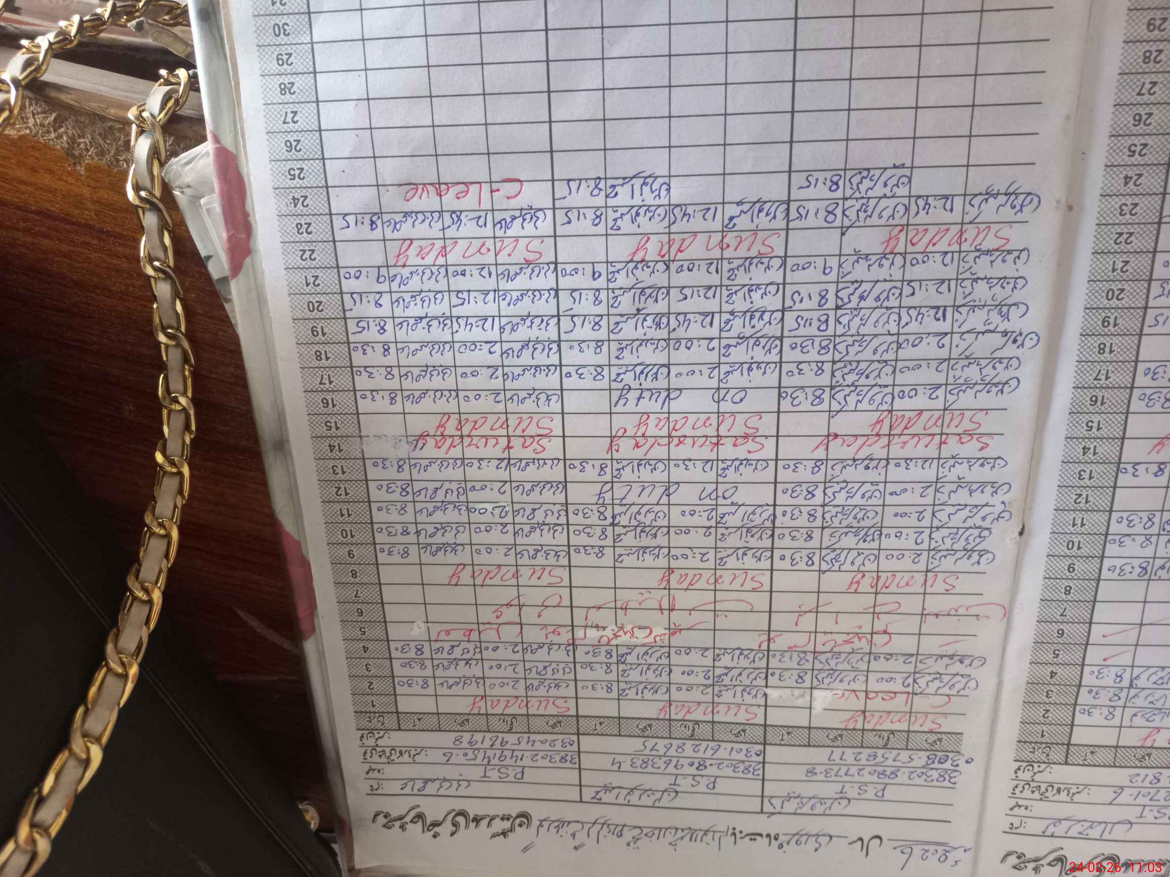 | Leave | Duty | Absent | Maternity | Medical | Ex- Pak |
