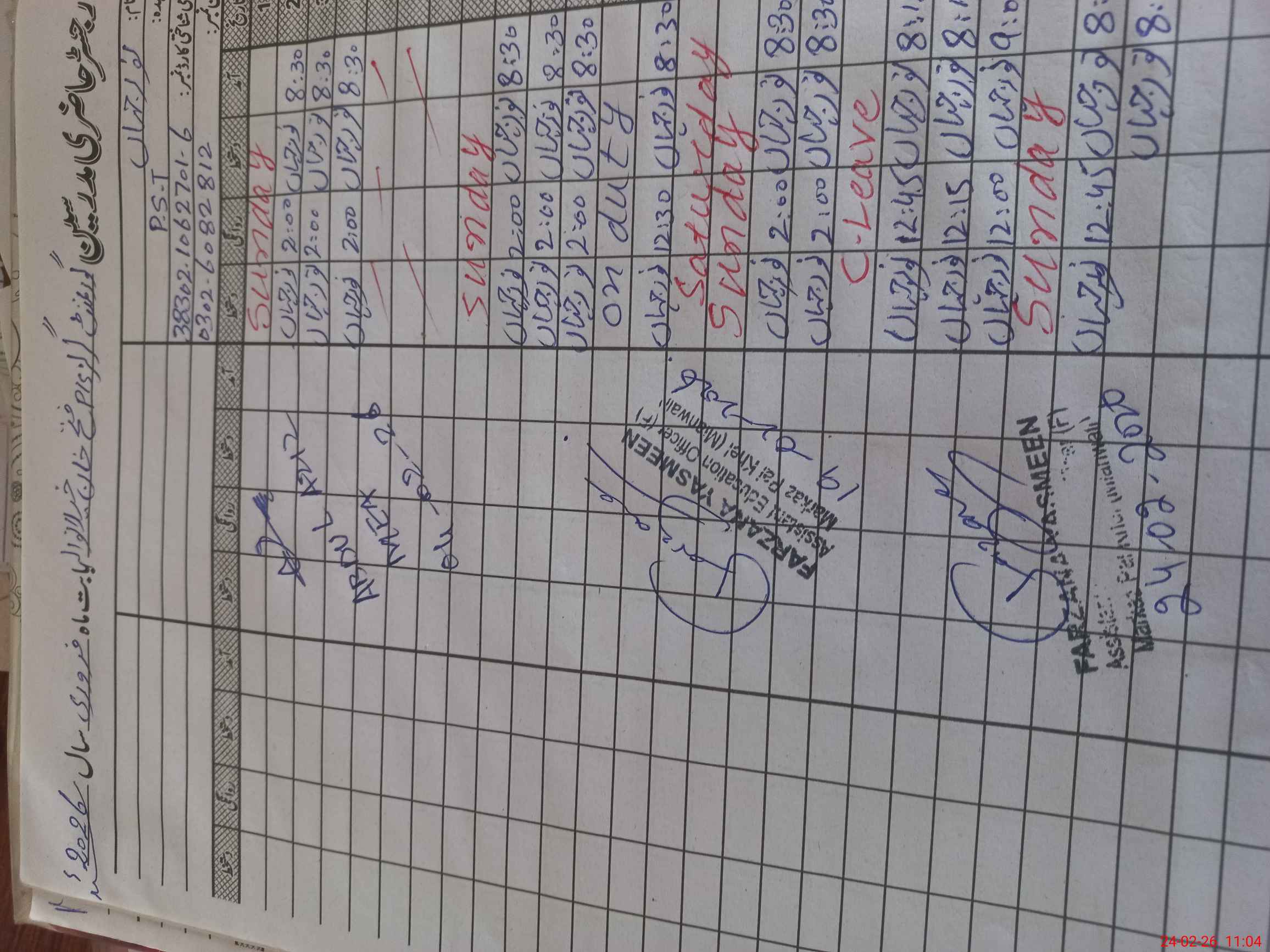| CNIC | Full Name | Designation | R/C | Absence During Last Calender Month |