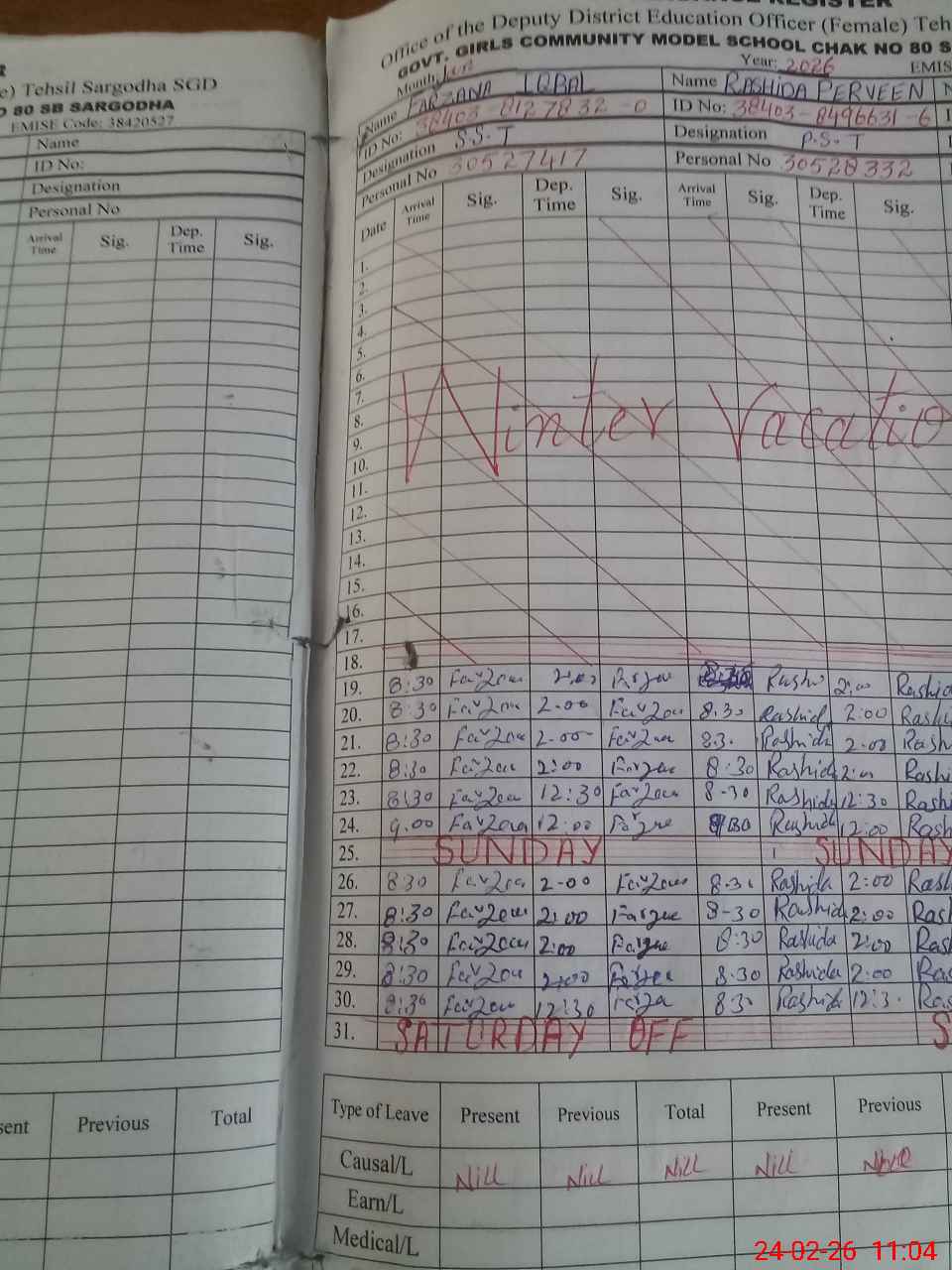 | Leave | Duty | Absent | Maternity | Medical | Ex- Pak |