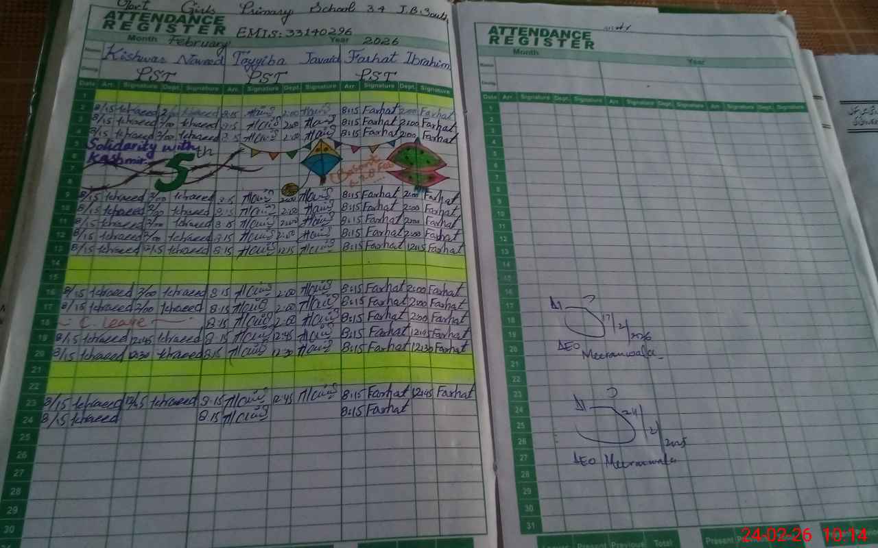 | EMIS Code: 33140296 | Name of School: GGPS CHAK 34 JB | |||