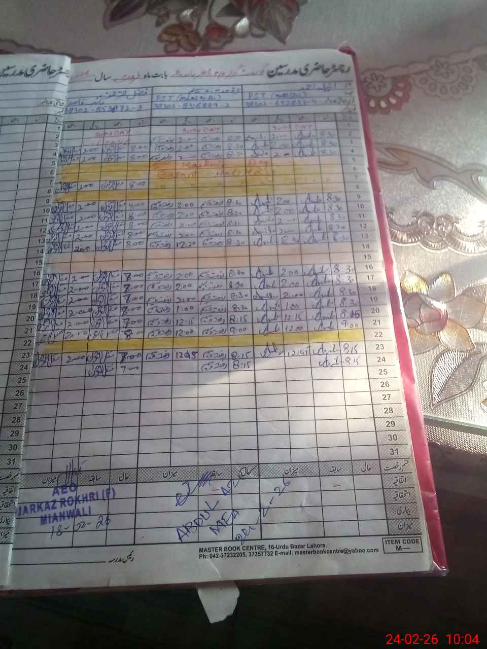 | District: MIANWALI | Tehsil: MIANWALI | Markaz: ROKHRI-FEMALE | Level: Middle | |