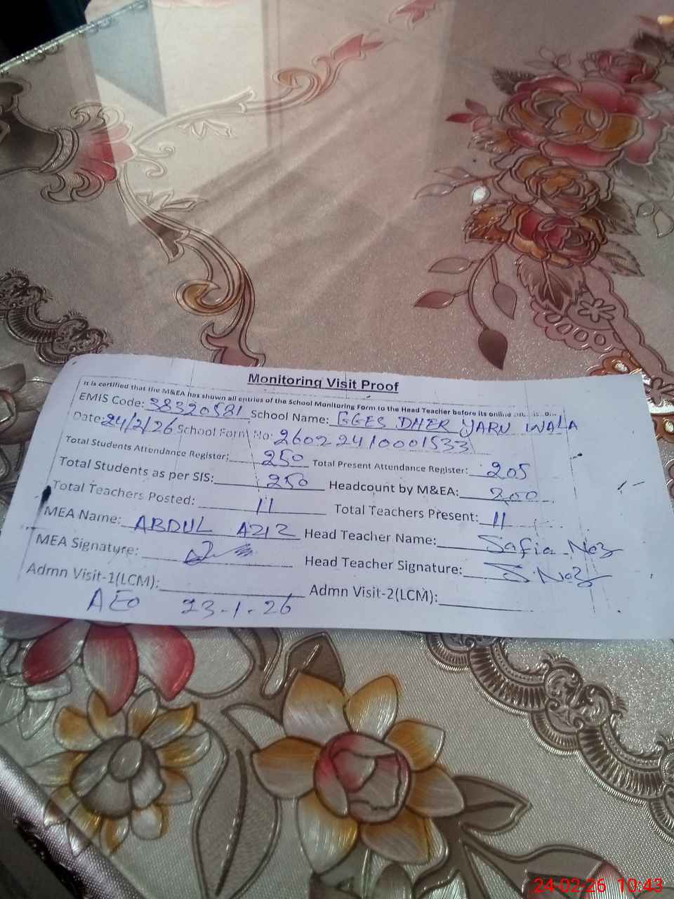 | EMIS Code: 38320581 | Name of School: GGES DHER YARU WALA | |||