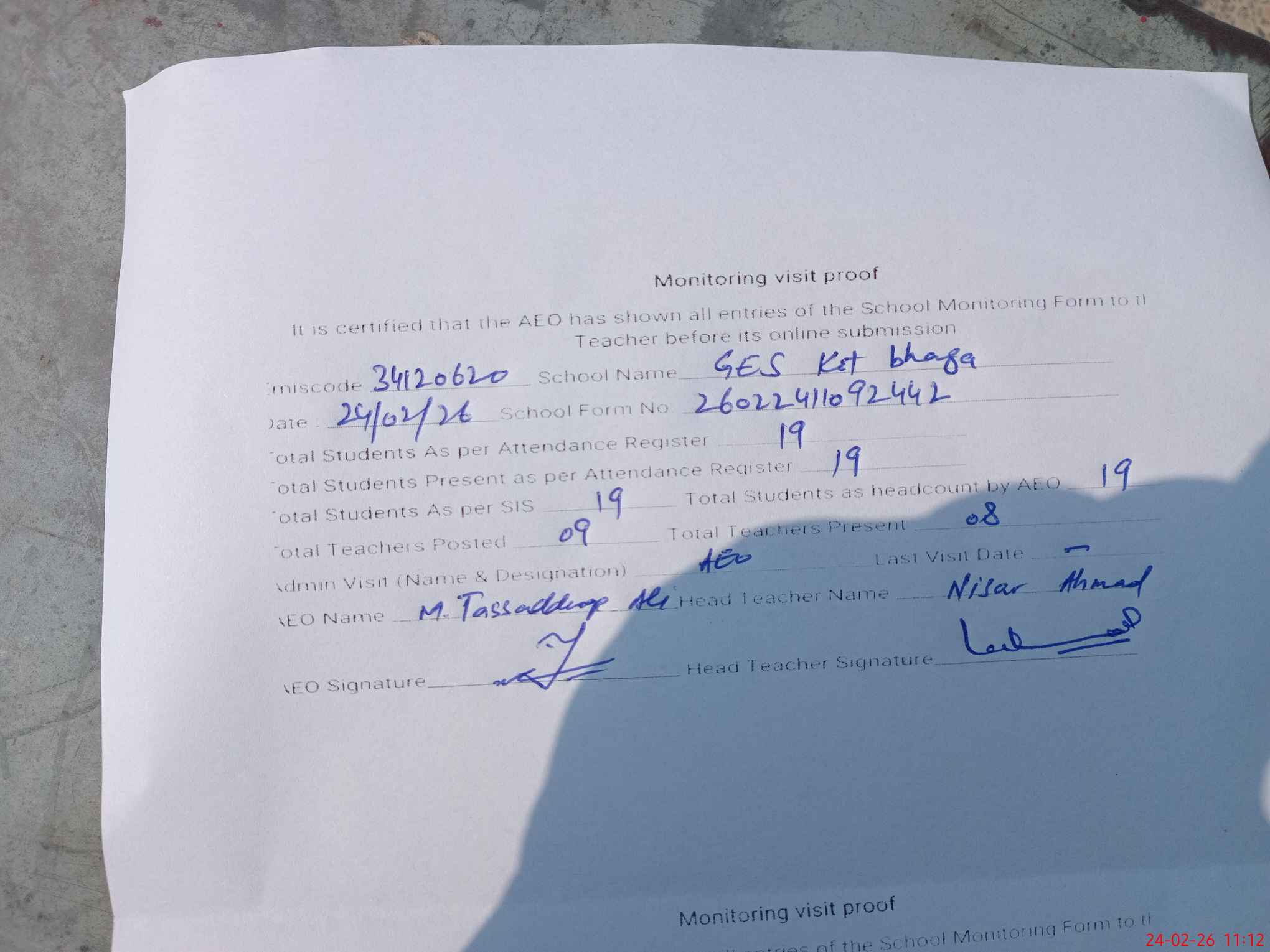 | EMIS Code: 34120620 | Name of School: GES KOT BHAGA | |||