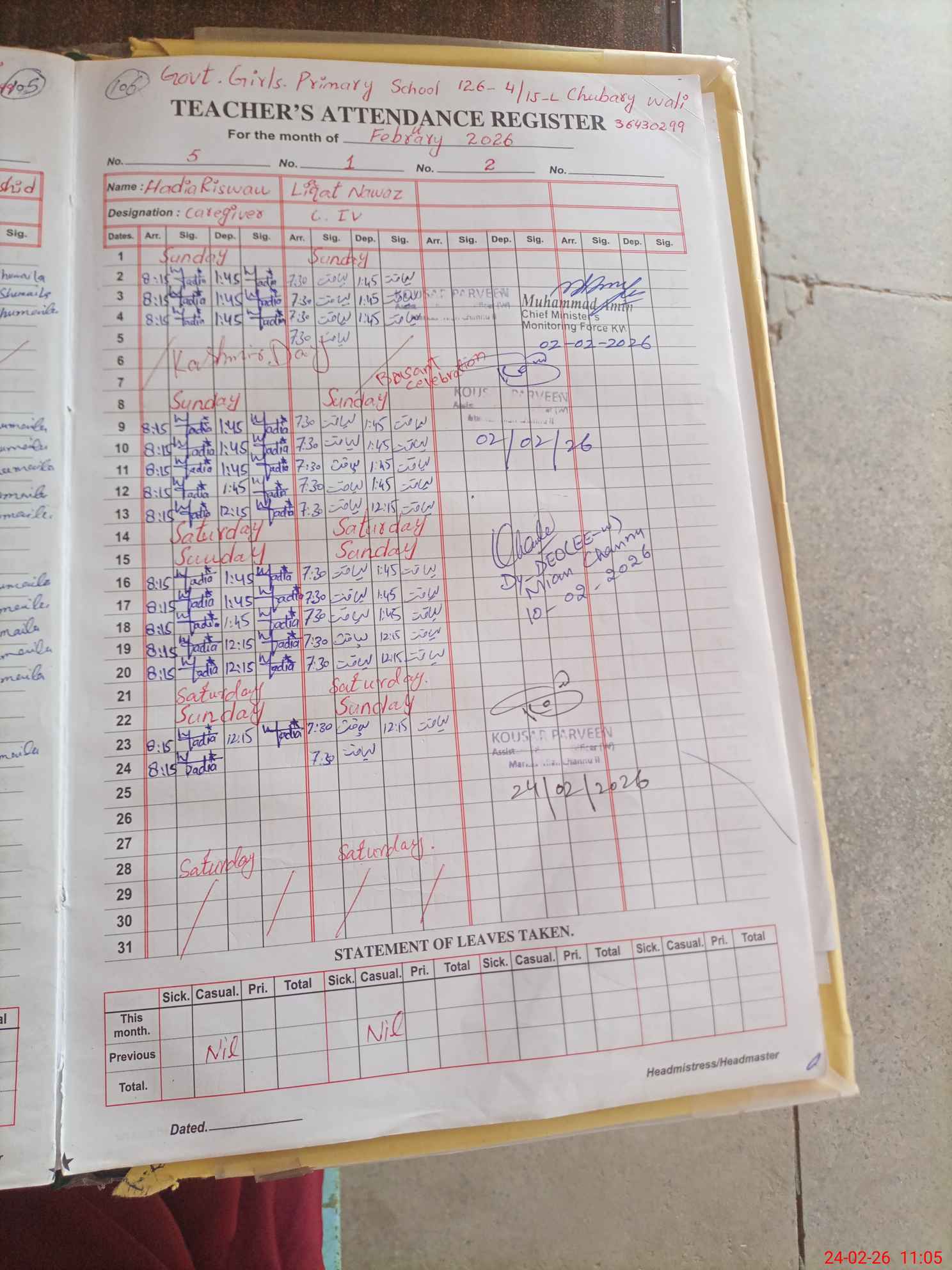 | EMIS Code: 36430299 | Name of School: GGPS 126-4/15-L CHUBARA WALI, MIAN CHANNU | |||