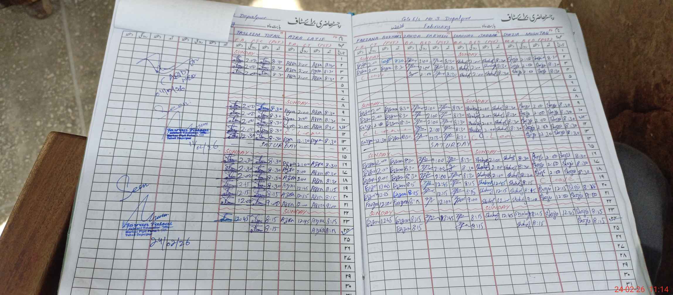 | CNIC | Full Name | Designation | R/C | Absence During Last Calender Month |