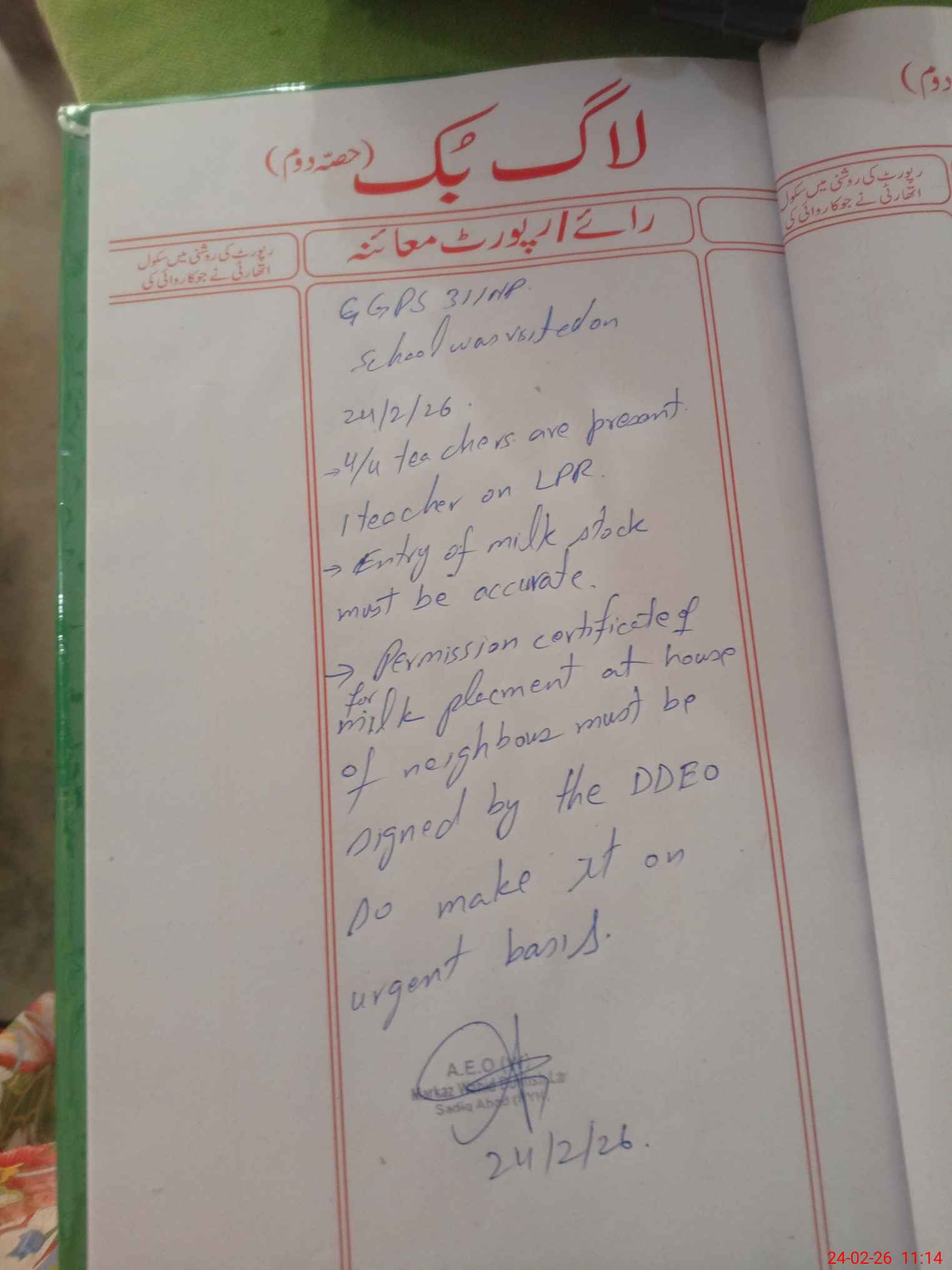 | Certified that this School was Inspected by the Undersigned MEA/DMO Today and the Information Stated Above is as Per Record. | |||||