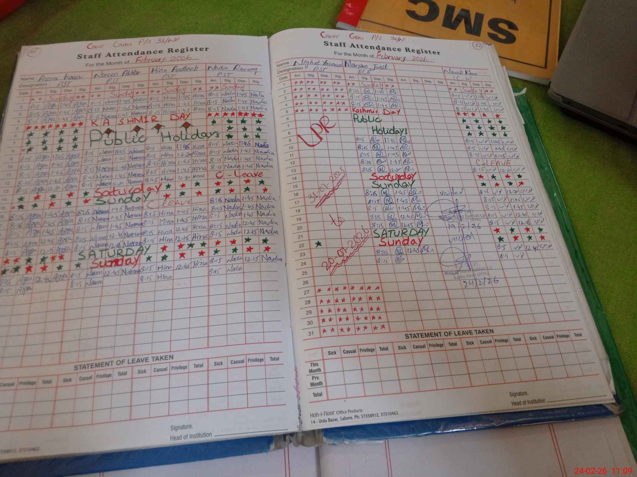 | Attendance Register | Head Teacher | MEA with School | Visit Proof |