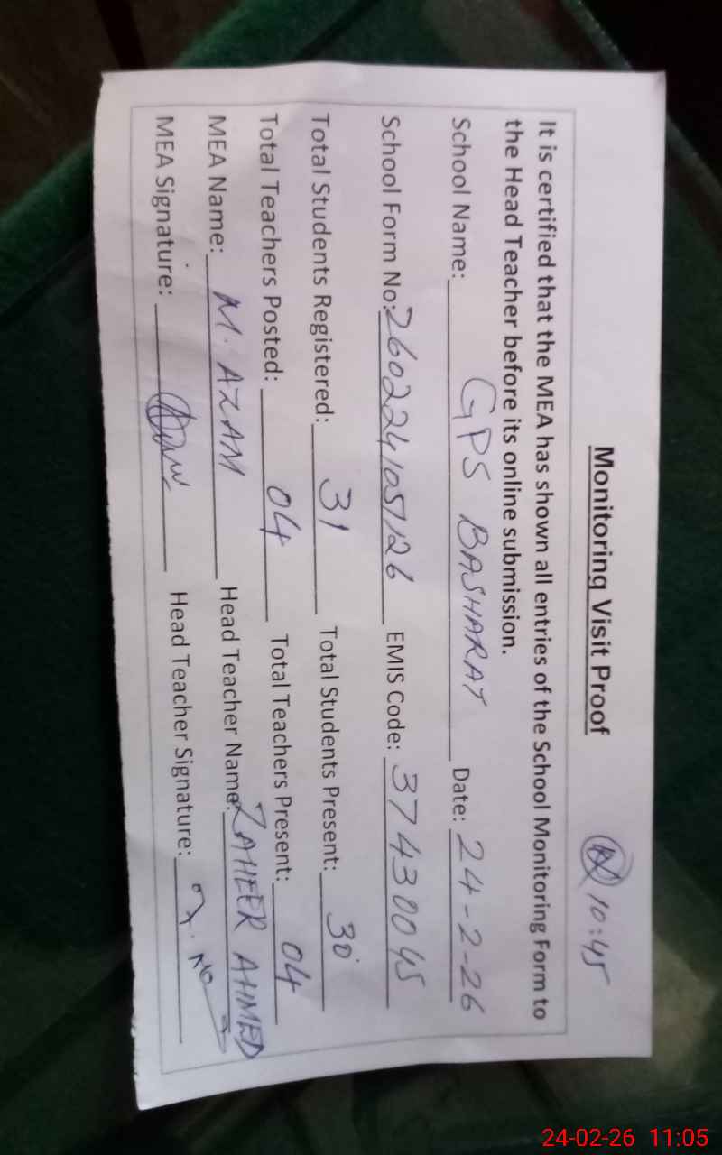 | EMIS Code: 37430045 | Name of School: GPS BASHARAT | |||