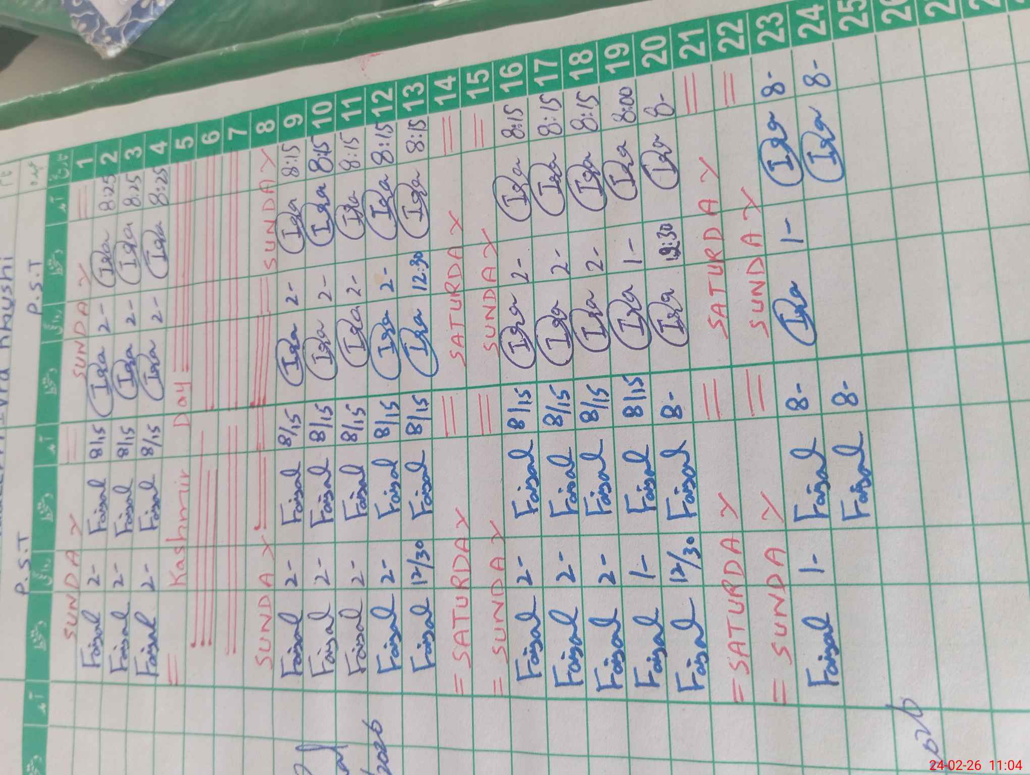 | No. of Students Present - Female | 0 | 0 | 6 | 12 | 15 | 13 | 16 | 77 | ||||||||