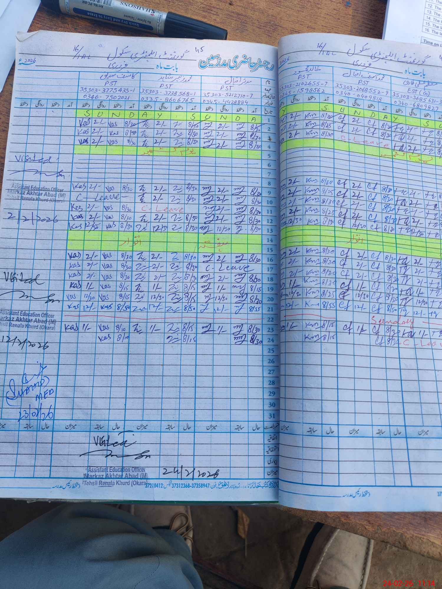 | CNIC | Full Name | Designation | R/C | Absence During Last Calender Month |