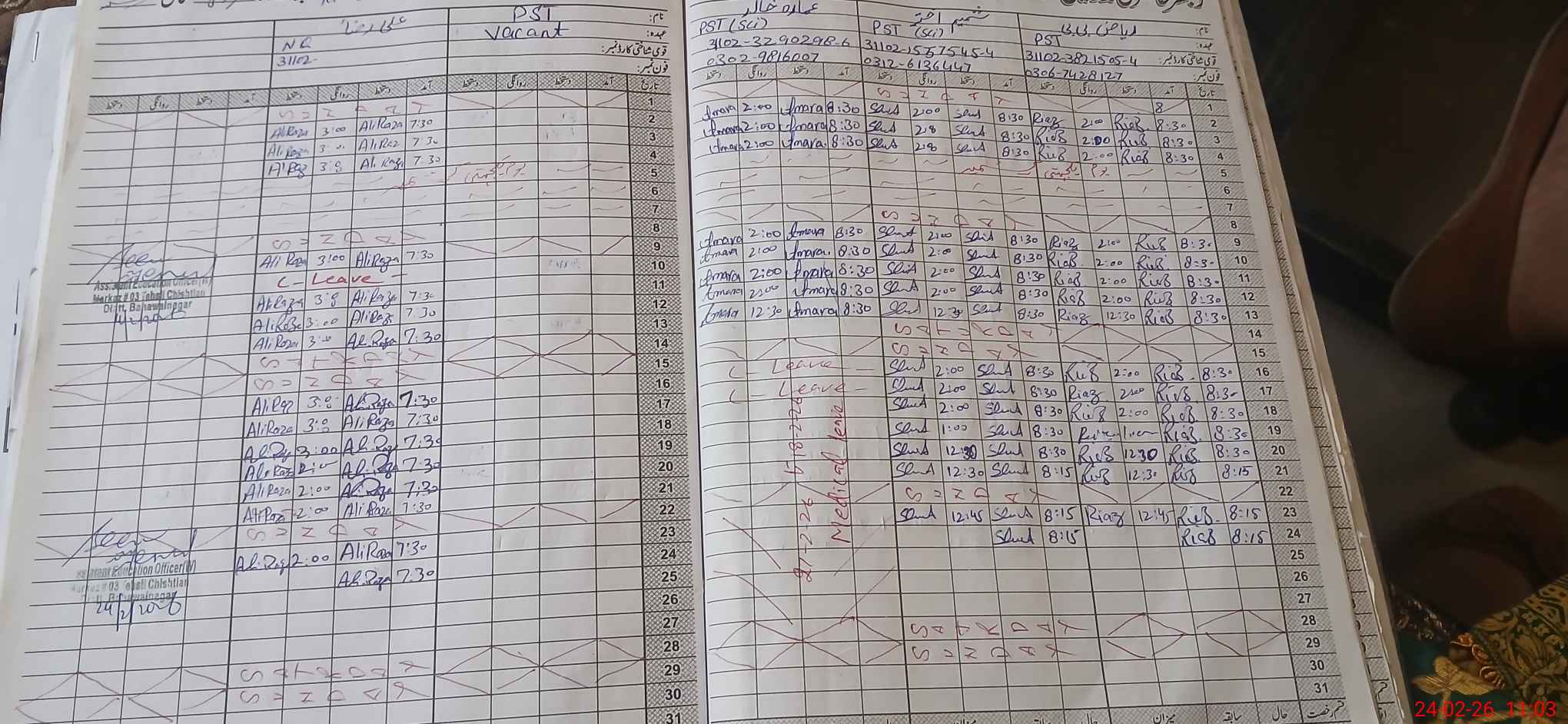 | Leave | Duty | Absent | Maternity | Medical | Ex- Pak |