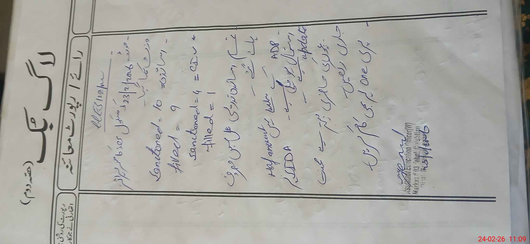 | Name: Fa**** Na**** Designation: (School Headmaster's/Headmistress's) SSE Urdu Phone/Cell Number: 03**** |