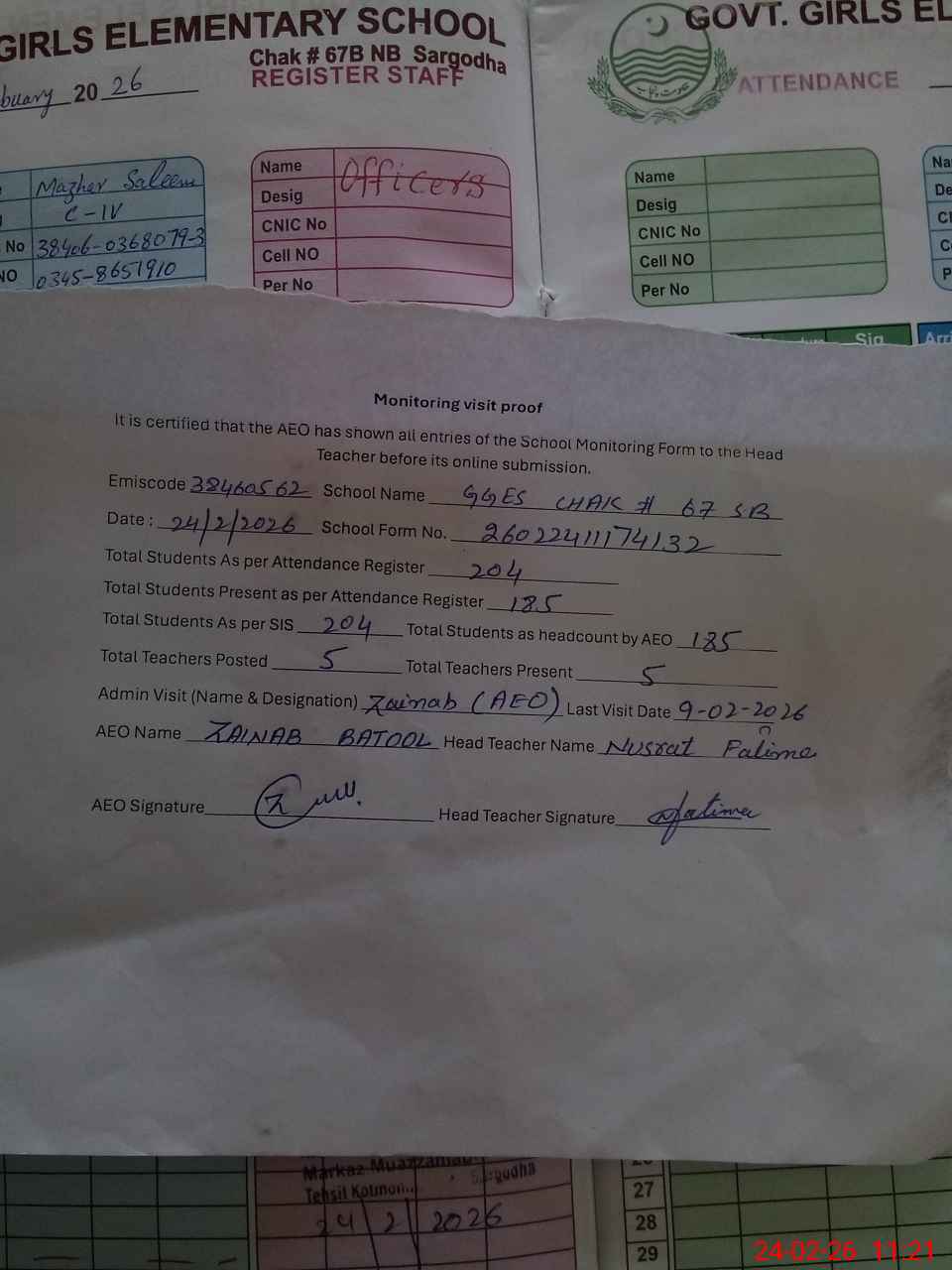 | Monitoring Date: 24-02-2026 | Start Time: 24-02-2026 11:00 AM | End Time: 24-02-2026 11:21 AM | Name of MEA: ZA**** BA**** | |