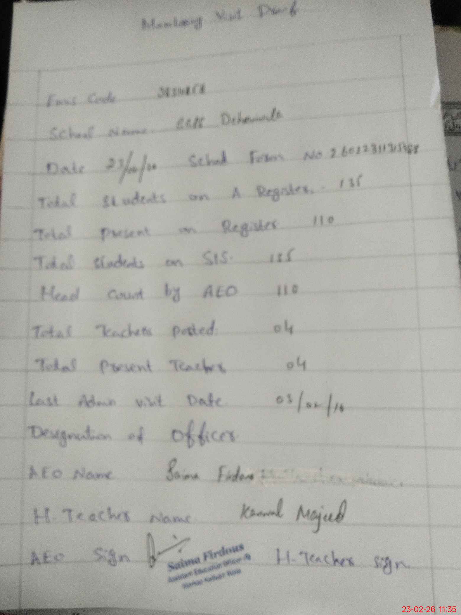 | Certified that this School was Inspected by the Undersigned MEA/DMO Today and the Information Stated Above is as Per Record. | |||||