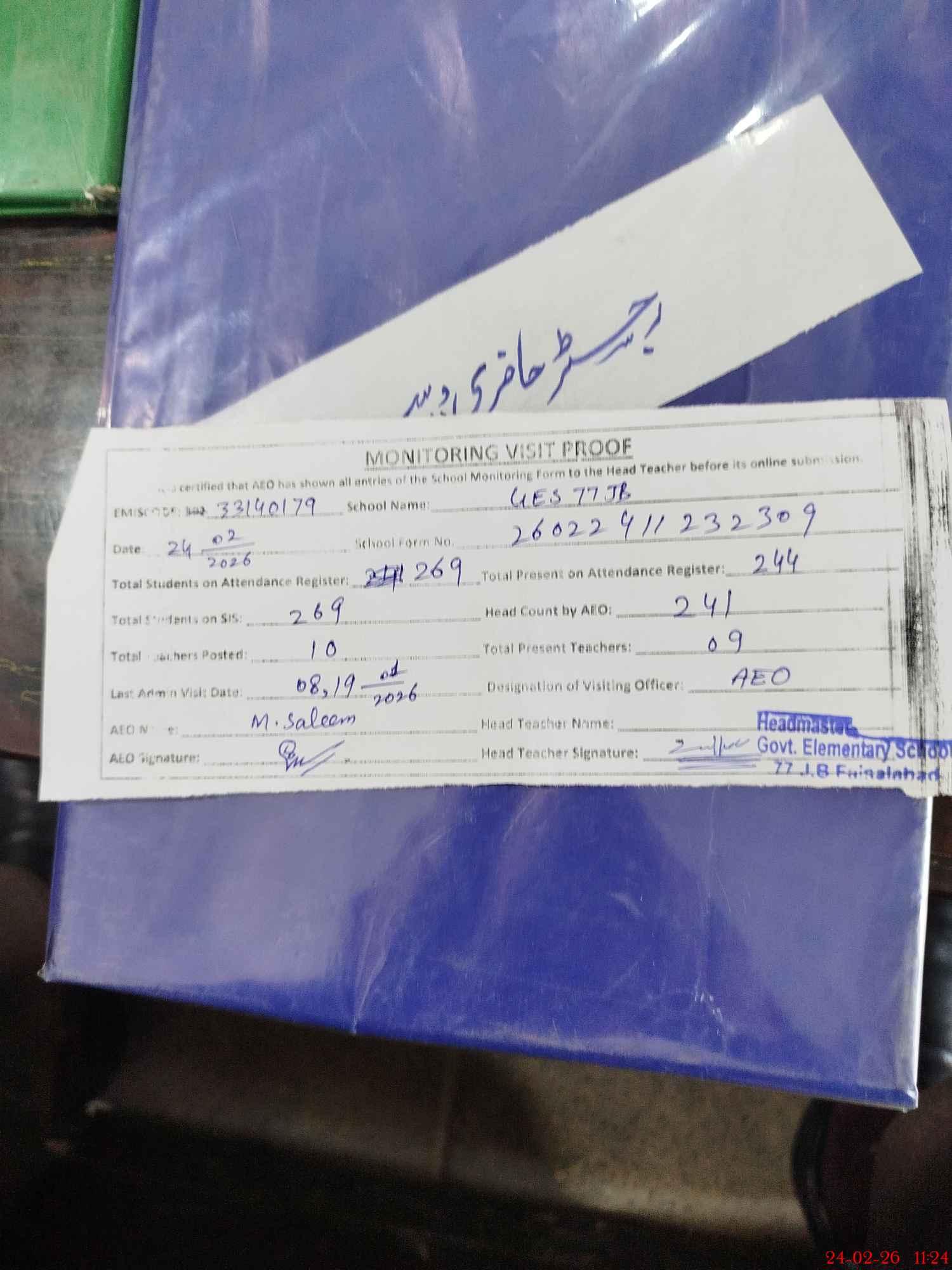 | EMIS Code: 33140179 | Name of School: GES CHAK 77 JB | |||