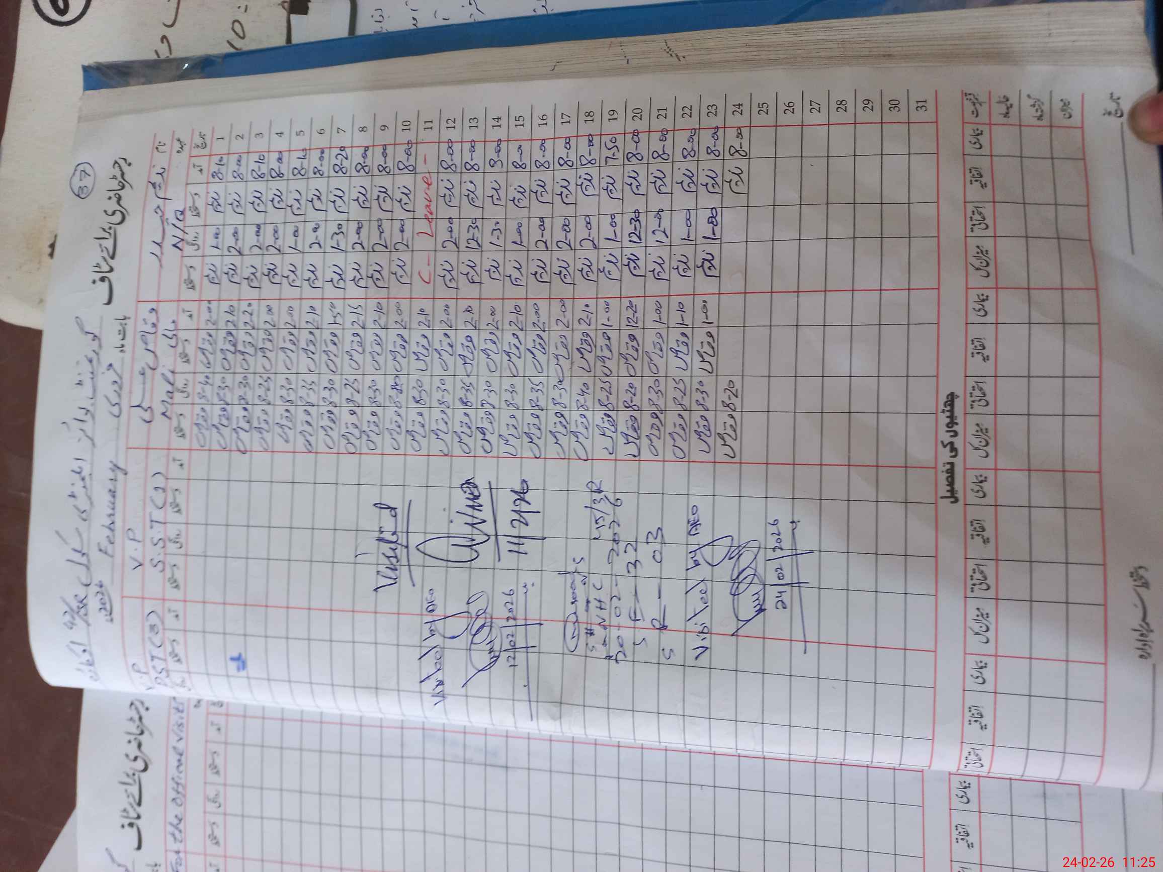 | Leave | Duty | Absent | Maternity | Medical | Ex- Pak |