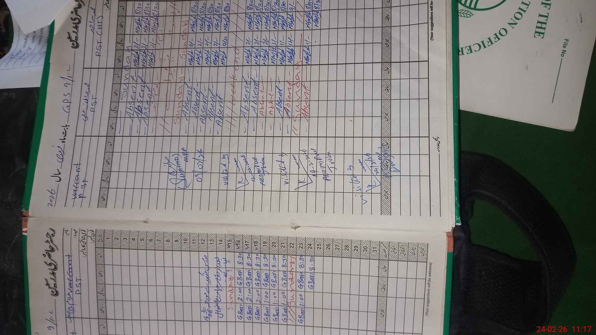 | Leave | Duty | Absent | Maternity | Medical | Ex- Pak |