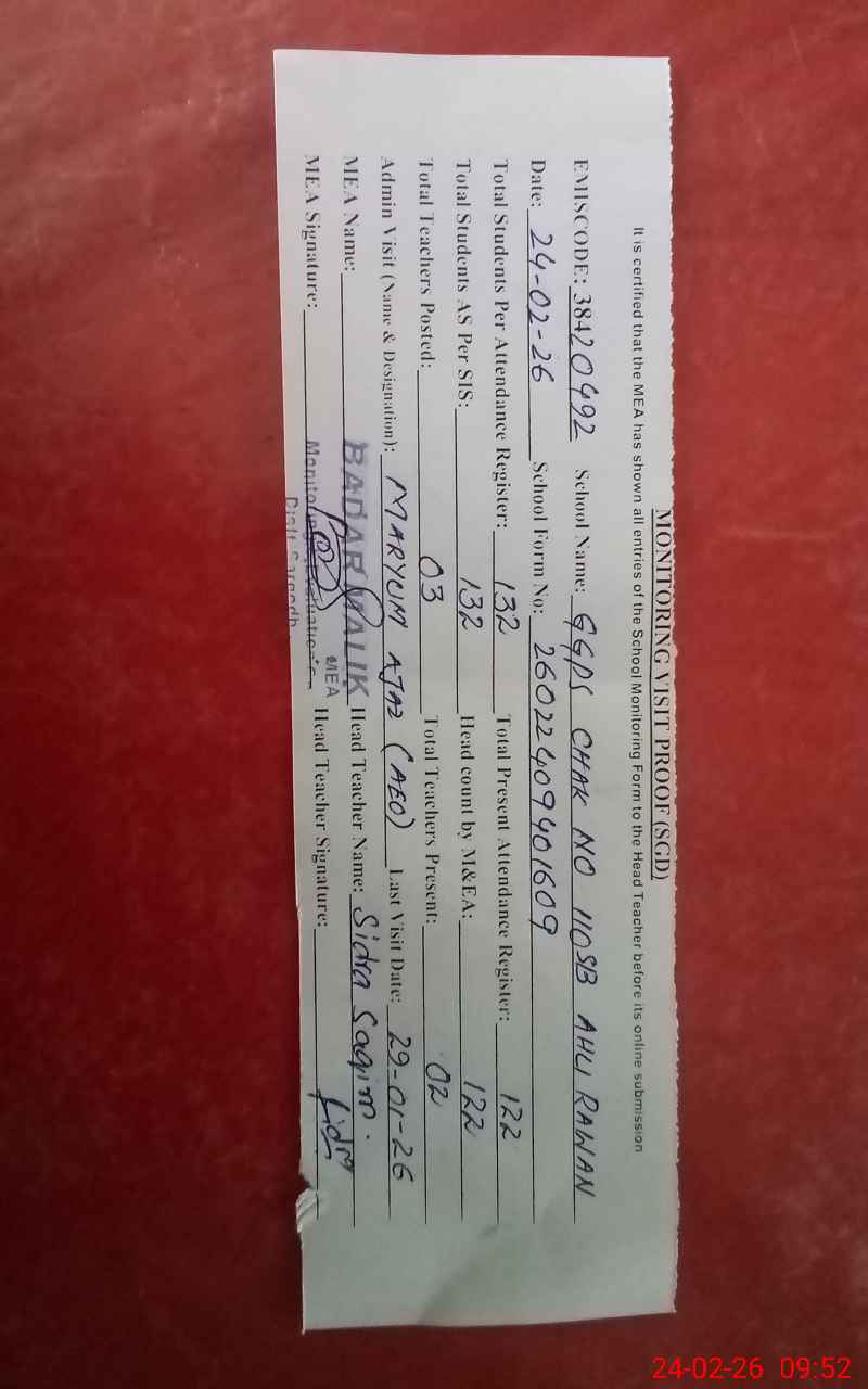 | EMIS Code: 38420492 | Name of School: GGPS CHAK NO.110 SB AHALI RAWANA | |||