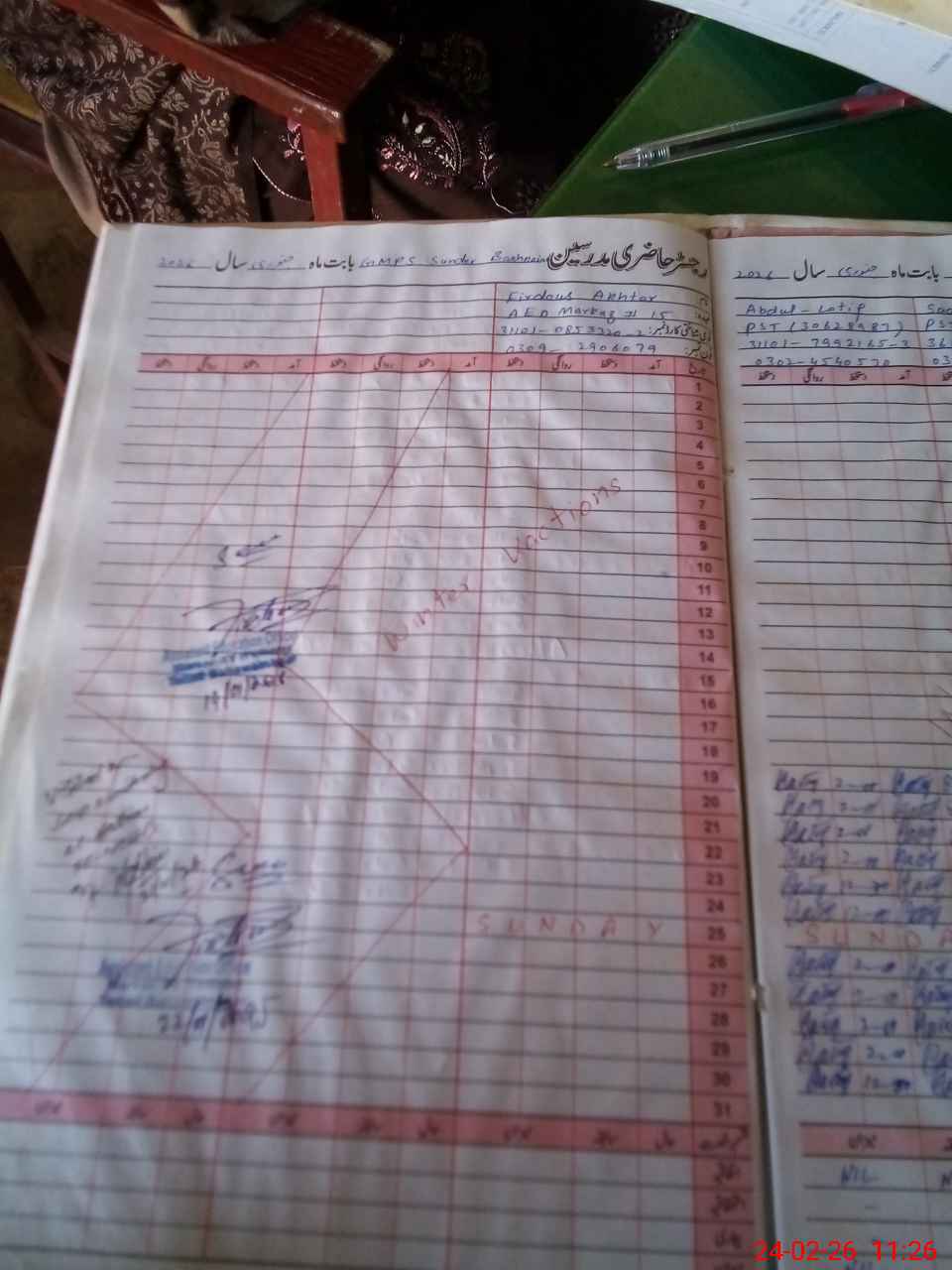 | CNIC | Full Name | Designation | R/C | Absence During Last Calender Month |