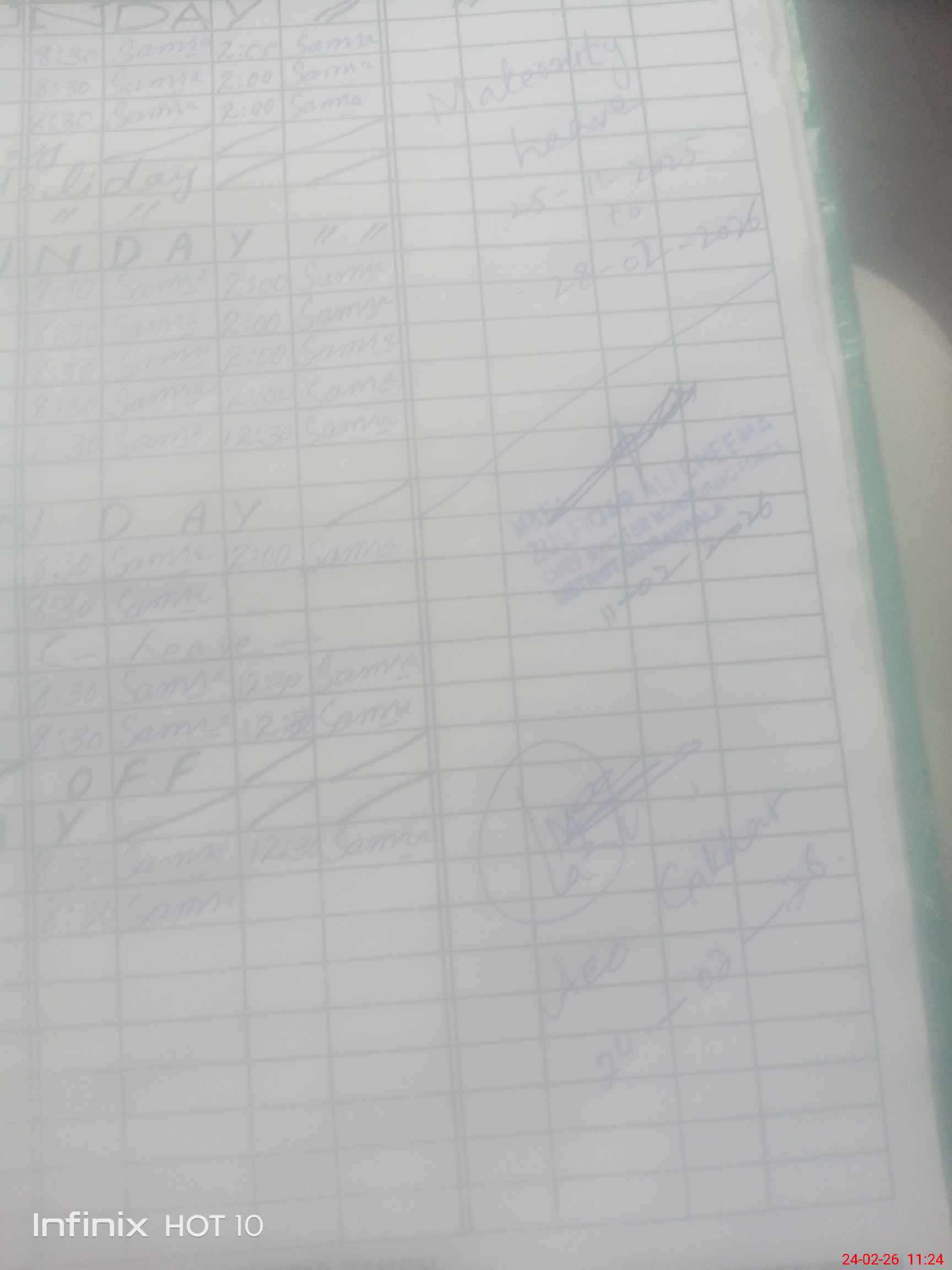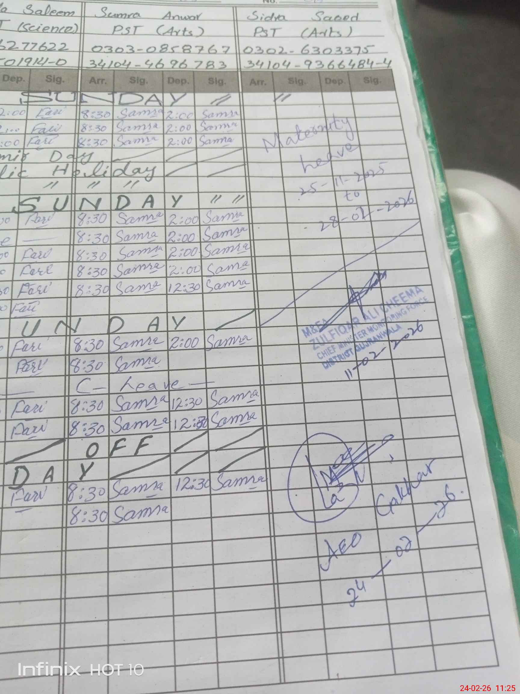 | Leave | Duty | Absent | Maternity | Medical | Ex- Pak |