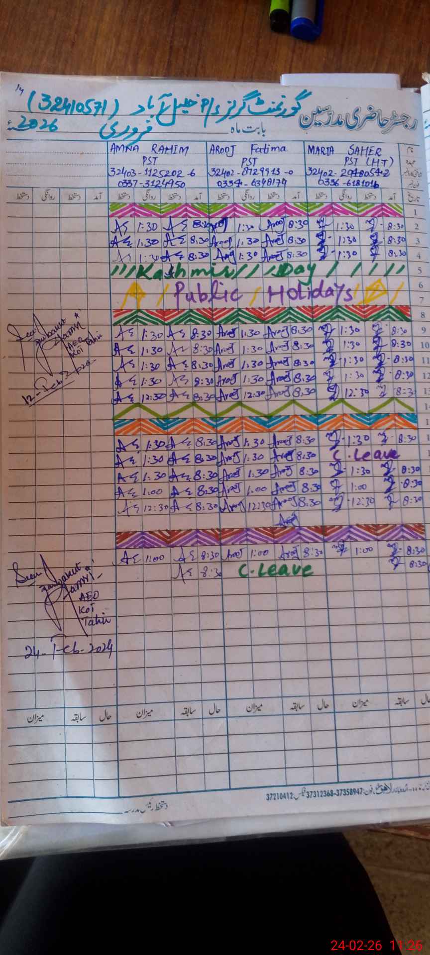 | 32**** | Sa**** Te**** | PST Arts | Regular | 0 | 0 | 30 | 0 | 0 | 0 | 0 | 0 | 0 | Casual |