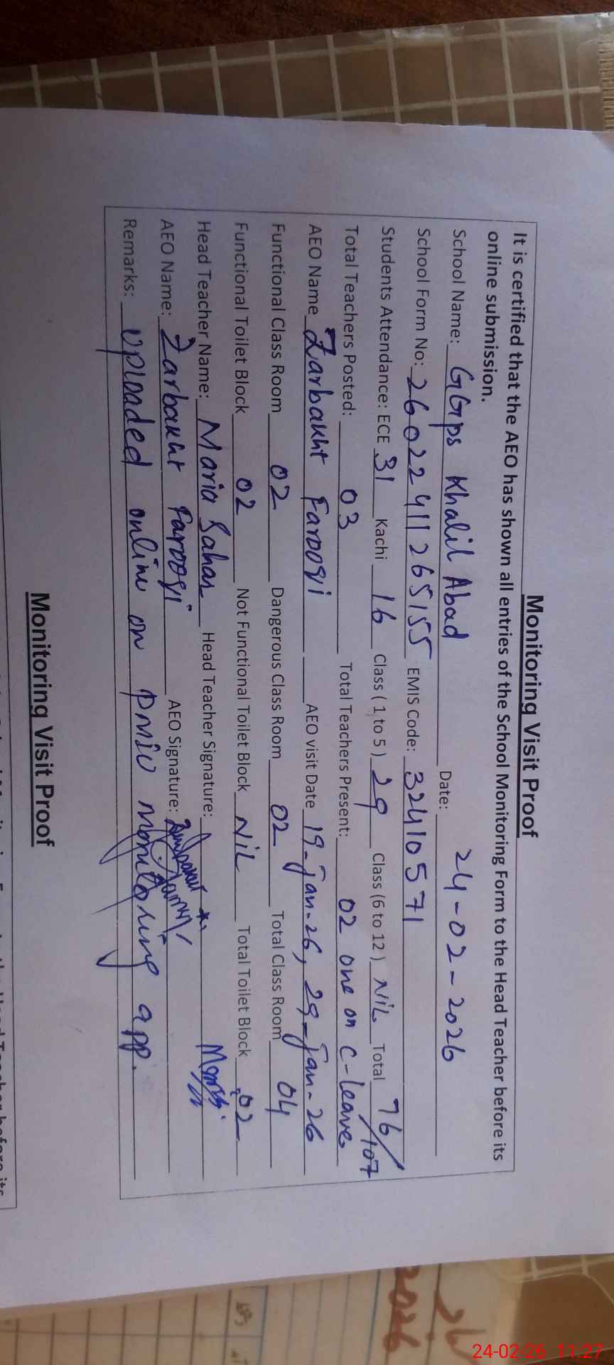 | EMIS Code: 32410571 | Name of School: GGPS KHALIL ABAD | |||