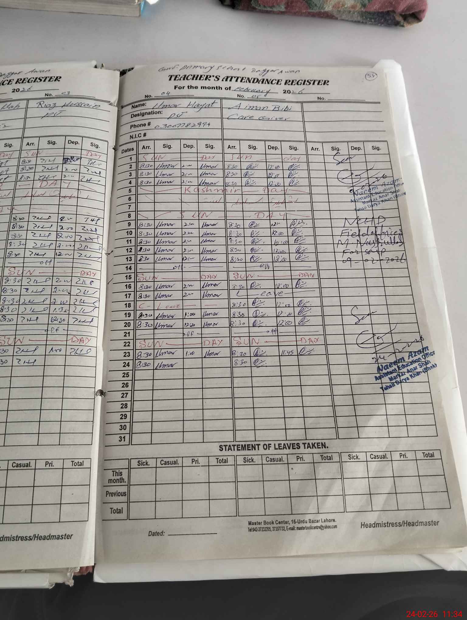 | Name: Mu**** Am**** Designation: (School Headmaster's/Headmistress's) PST Head Phone/Cell Number: 03**** |