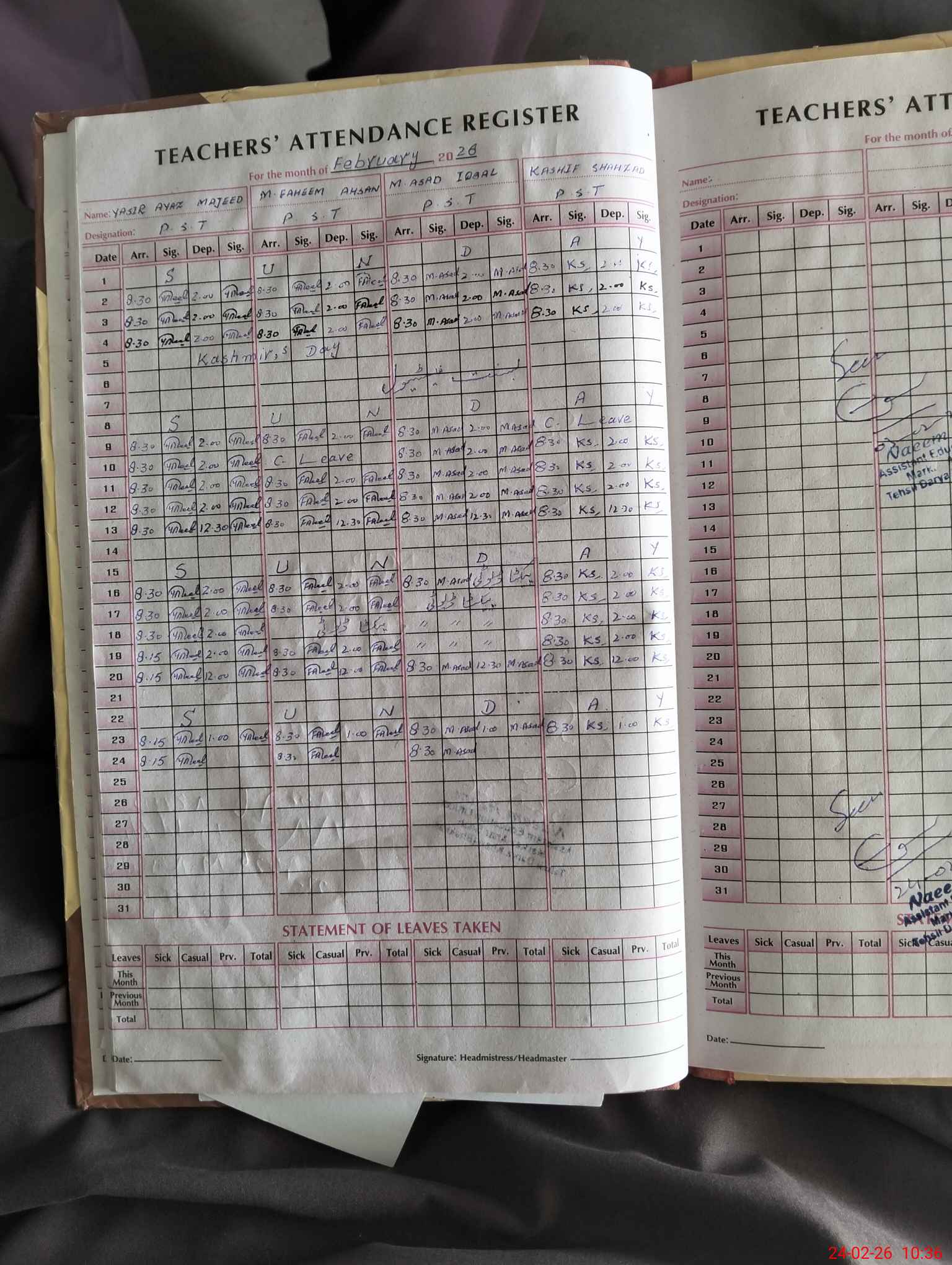 | Leave | Duty | Absent | Maternity | Medical | Ex- Pak |