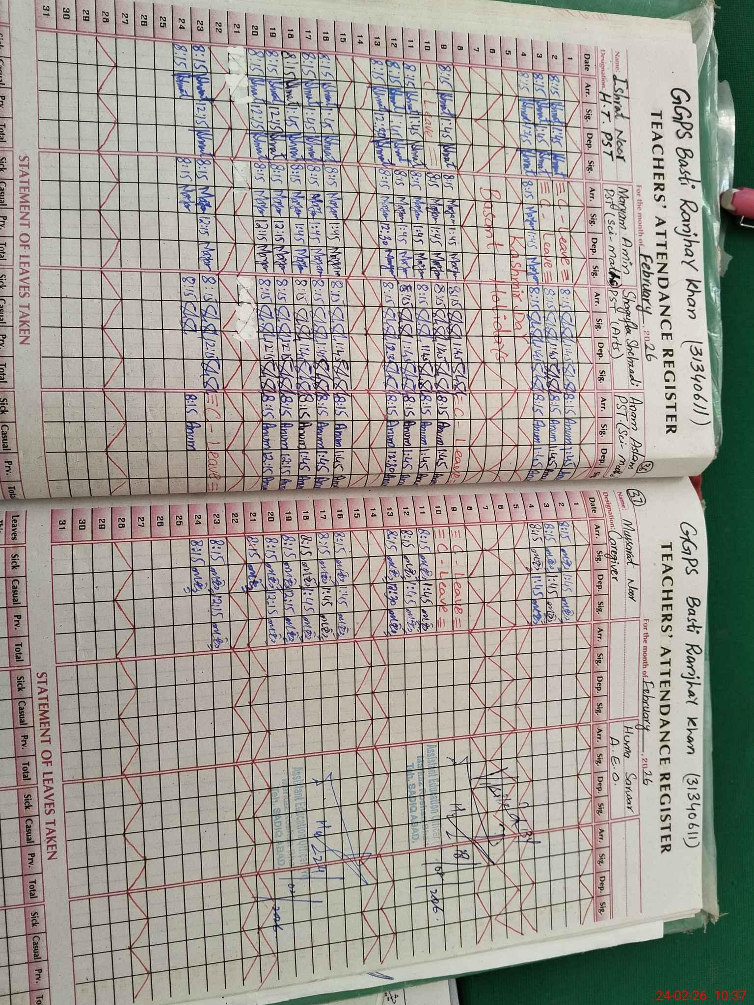 | Leave | Duty | Absent | Maternity | Medical | Ex- Pak |