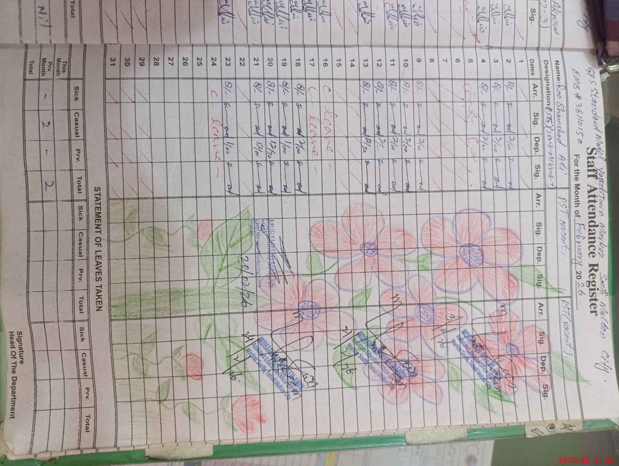 | 36**** | Ze**** Ha**** | PST Arts | Regular | 0 | 0 | 0 | 0 | 0 | 0 | 0 | 0 | 0 | Casual |