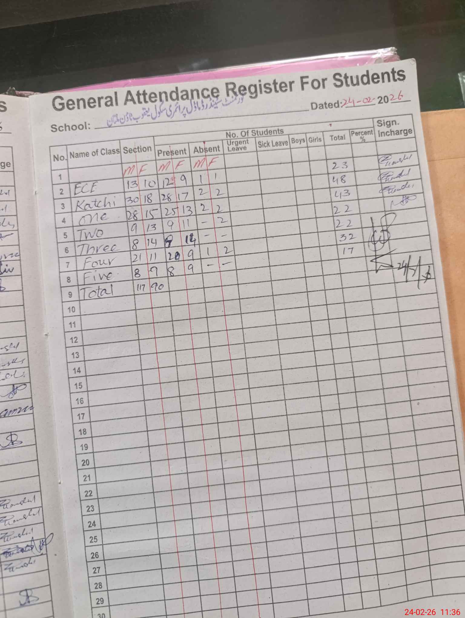 | No. of Students Present - Male | 0 | 12 | 27 | 9 | 8 | 20 | 8 | 112 | ||||||||