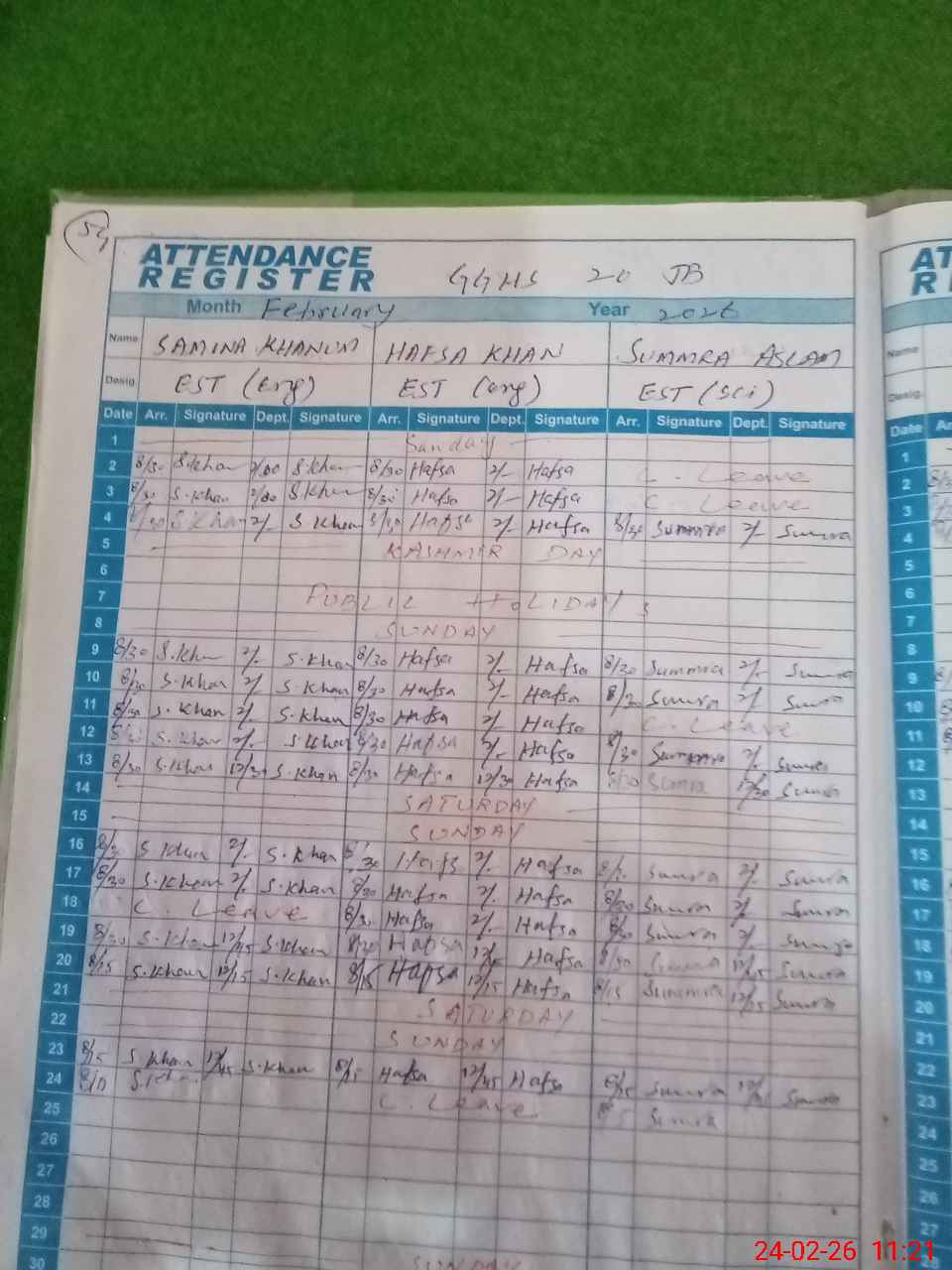 | CNIC | Full Name | Designation | R/C | Absence During Last Calender Month |