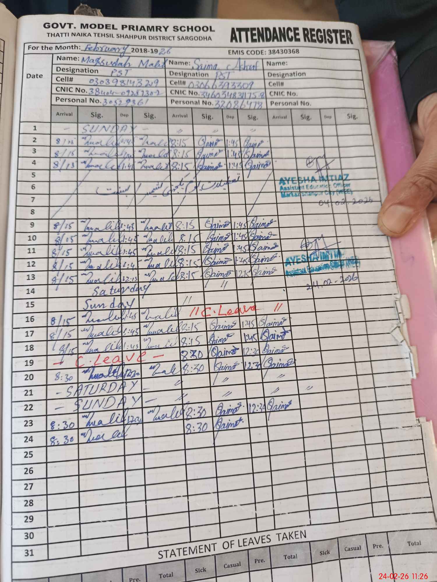 | Name: SA**** AH**** Designation: (School Headmaster's/Headmistress's) PST Phone/Cell Number: 03**** |