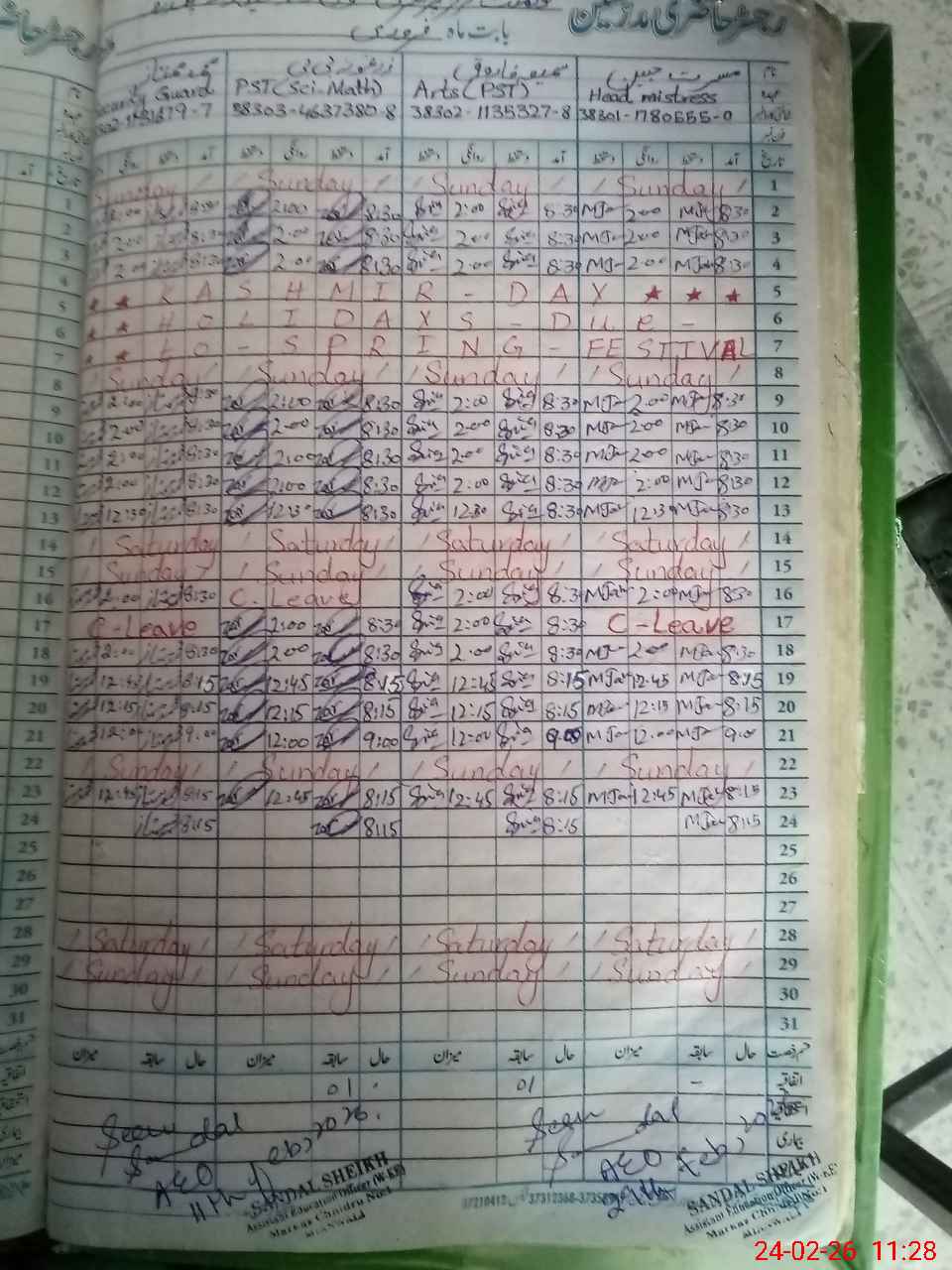 | Name: Mu**** Ja**** Designation: (School Headmaster's/Headmistress's) PST Arts Phone/Cell Number: 03**** |