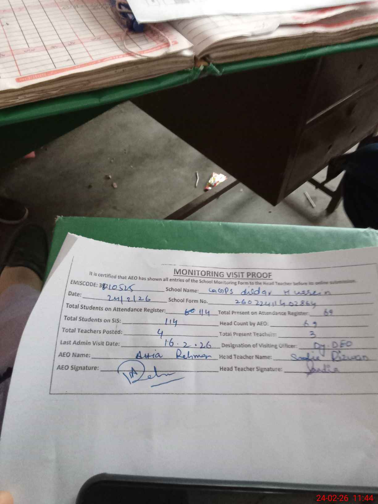 | Certified that this School was Inspected by the Undersigned MEA/DMO Today and the Information Stated Above is as Per Record. | |||||