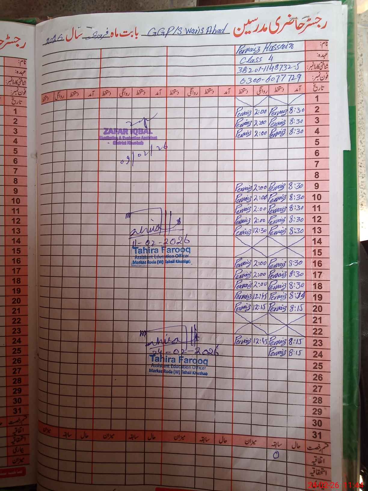 | Name: Sh**** Ak**** Designation: (School Headmaster's/Headmistress's) PST Phone/Cell Number: 03**** |