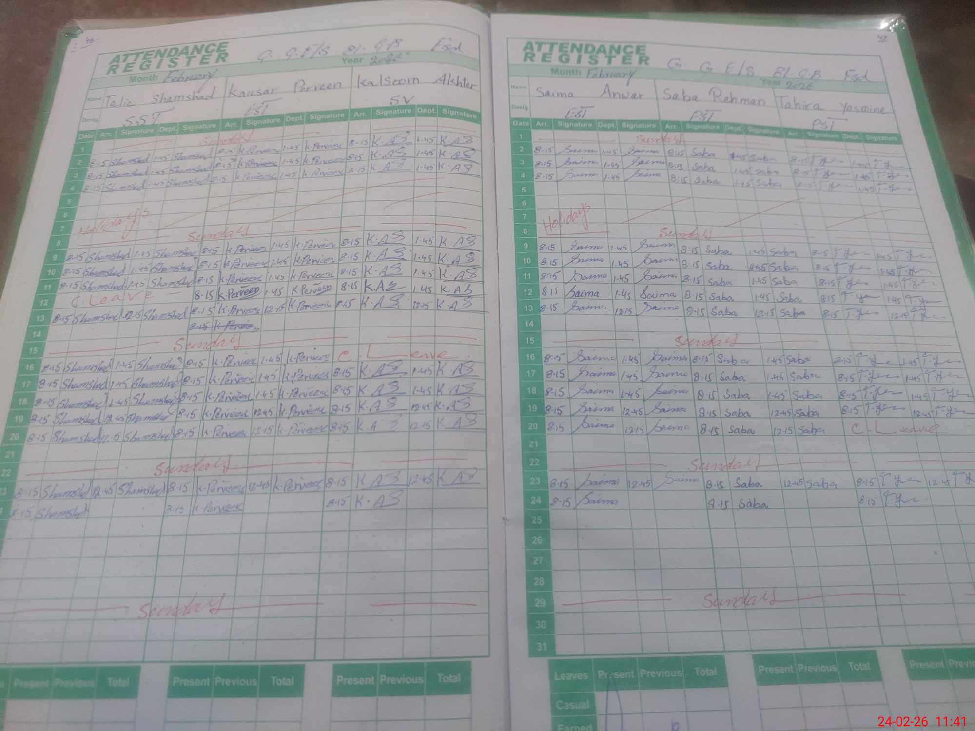| Leave | Duty | Absent | Maternity | Medical | Ex- Pak |