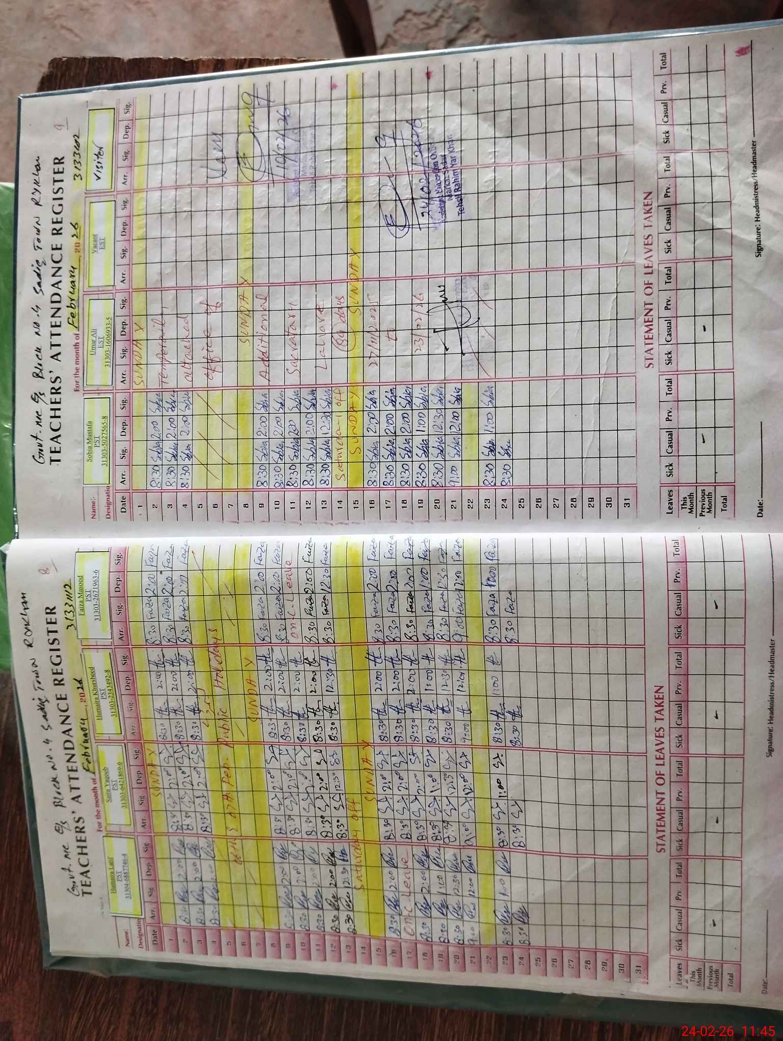 | CNIC | Full Name | Designation | R/C | Absence During Last Calender Month |