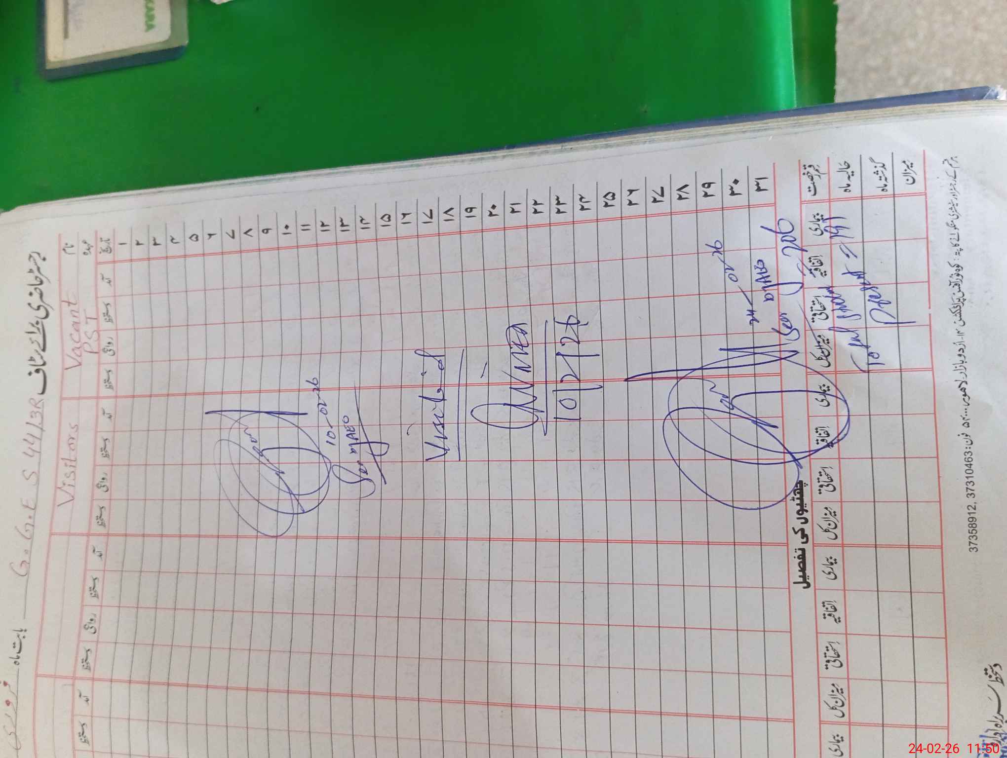 | CNIC | Full Name | Designation | R/C | Absence During Last Calender Month |