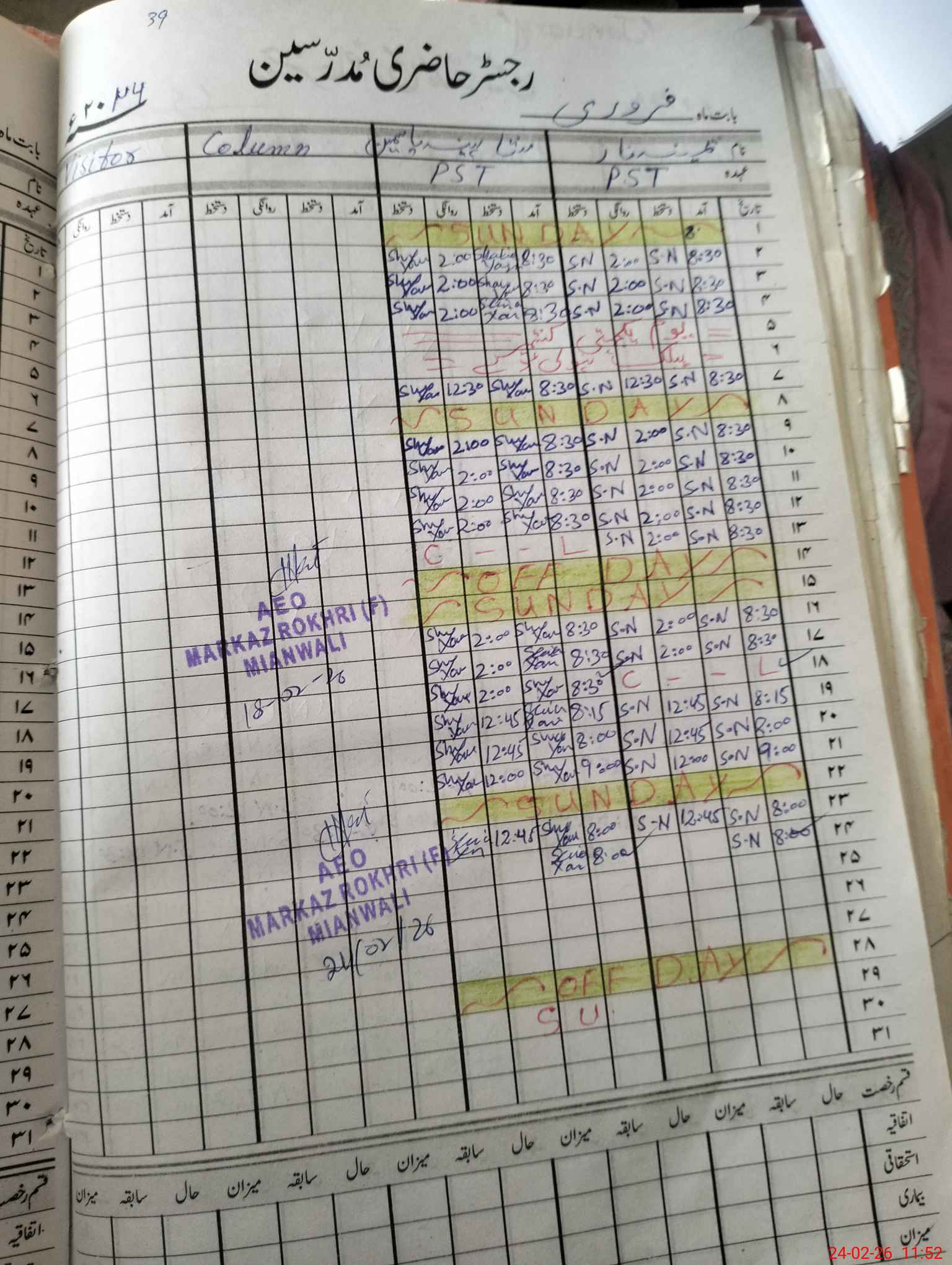 | CNIC | Full Name | Designation | R/C | Absence During Last Calender Month |