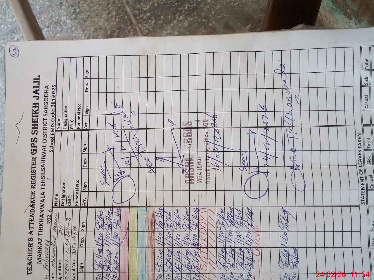 | EMIS Code: 38450325 | Name of School: GPS SHEIKH JALIL | |||