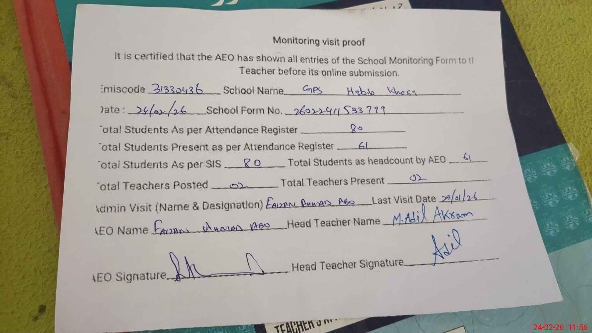 | EMIS Code: 31330436 | Name of School: GPS HABIB KHERA | |||