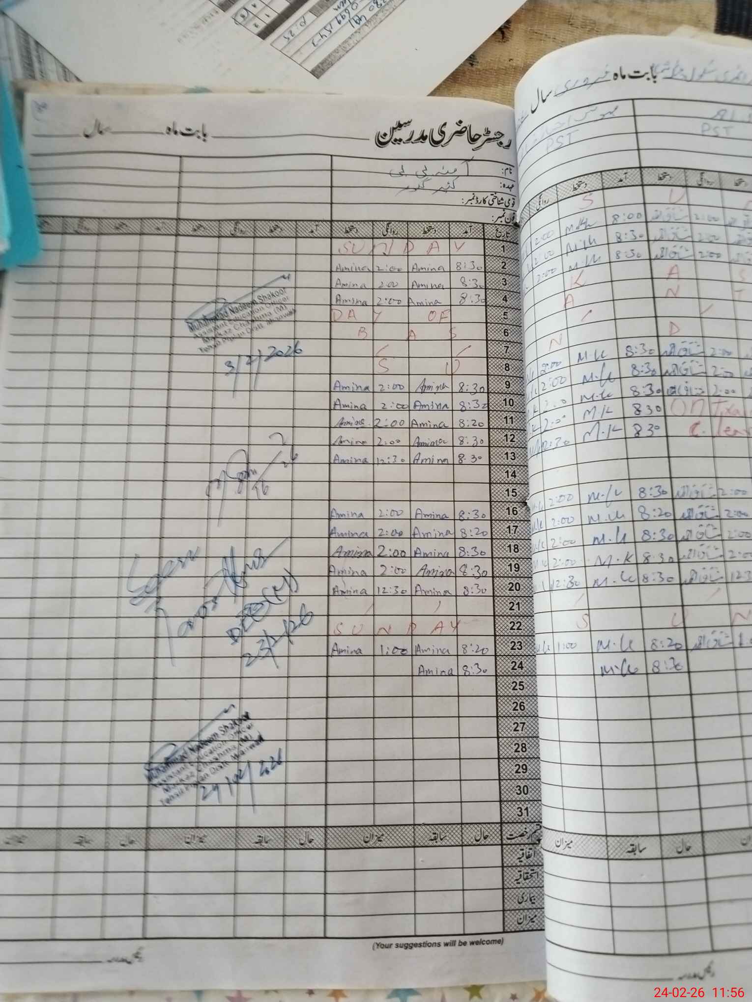 | CNIC | Full Name | Designation | R/C | Absence During Last Calender Month |