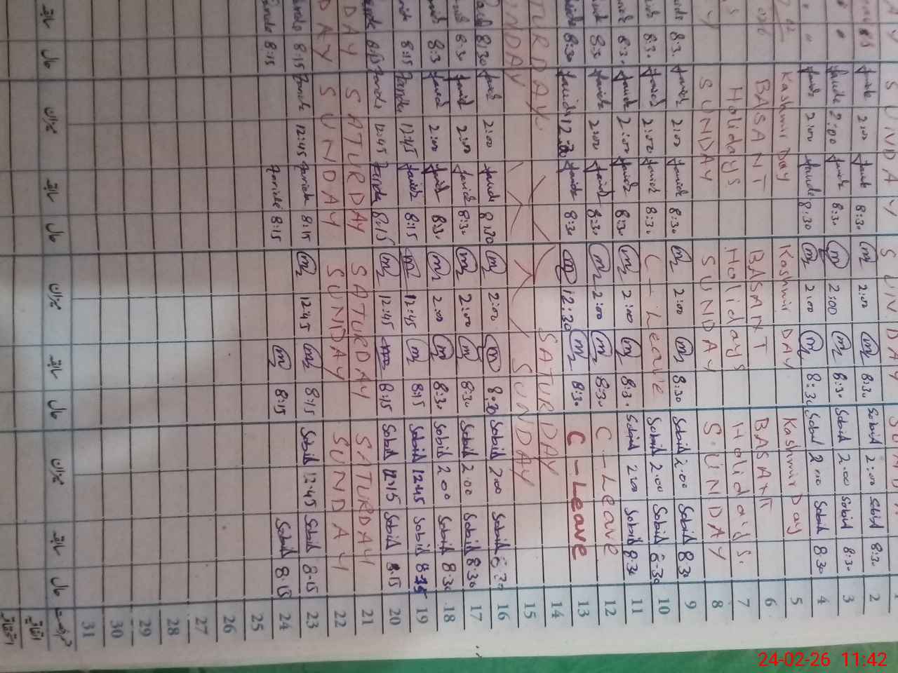 | Leave | Duty | Absent | Maternity | Medical | Ex- Pak |